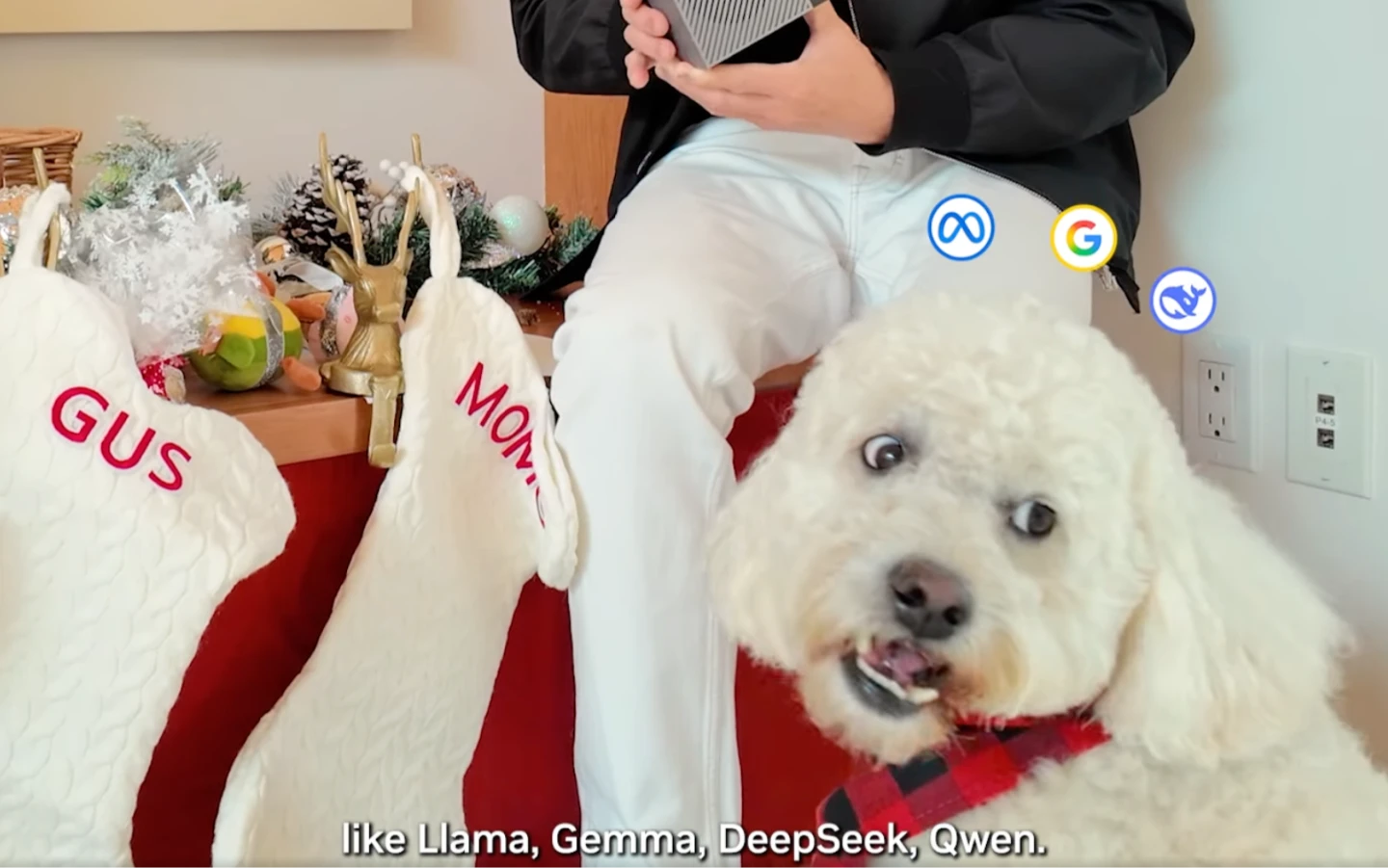 但在他說明這可以每秒67兆次運算、配備64GB記憶體時,顯然超出毛孩的理解範圍。因此黃仁勳舉實例,稱這可用來研發Meta的LLaMA、Google的Gemma、中國的DeepSeek這類的模型,也可以用來開發即時聊天機器人(chatbot)。「Kuma」才露出期待的表情。
