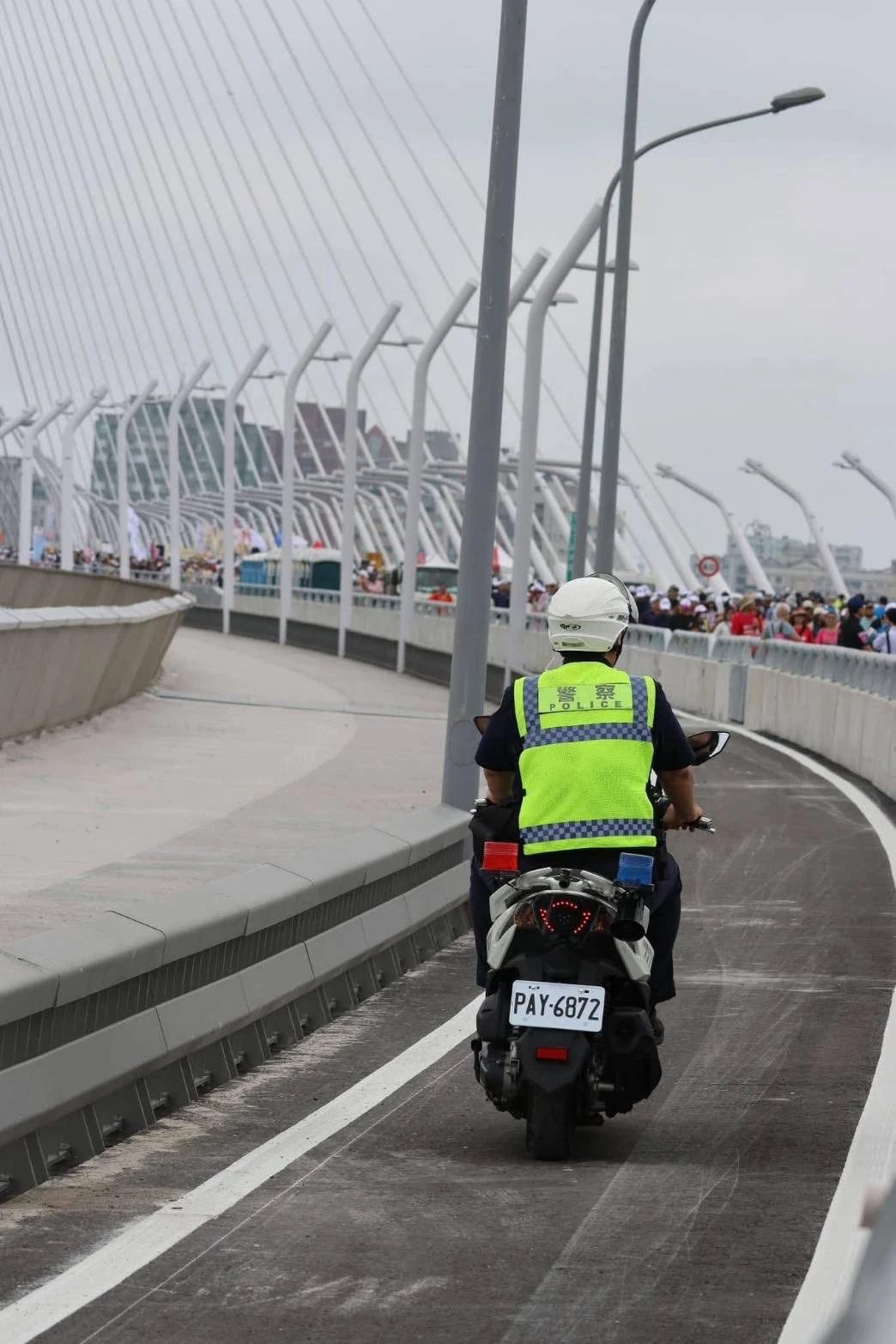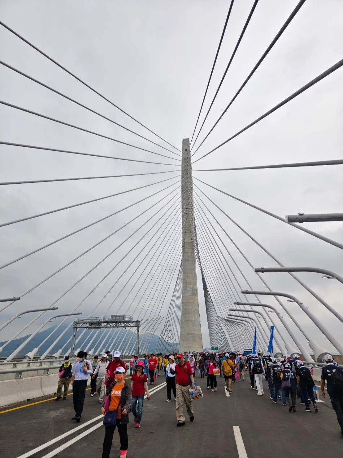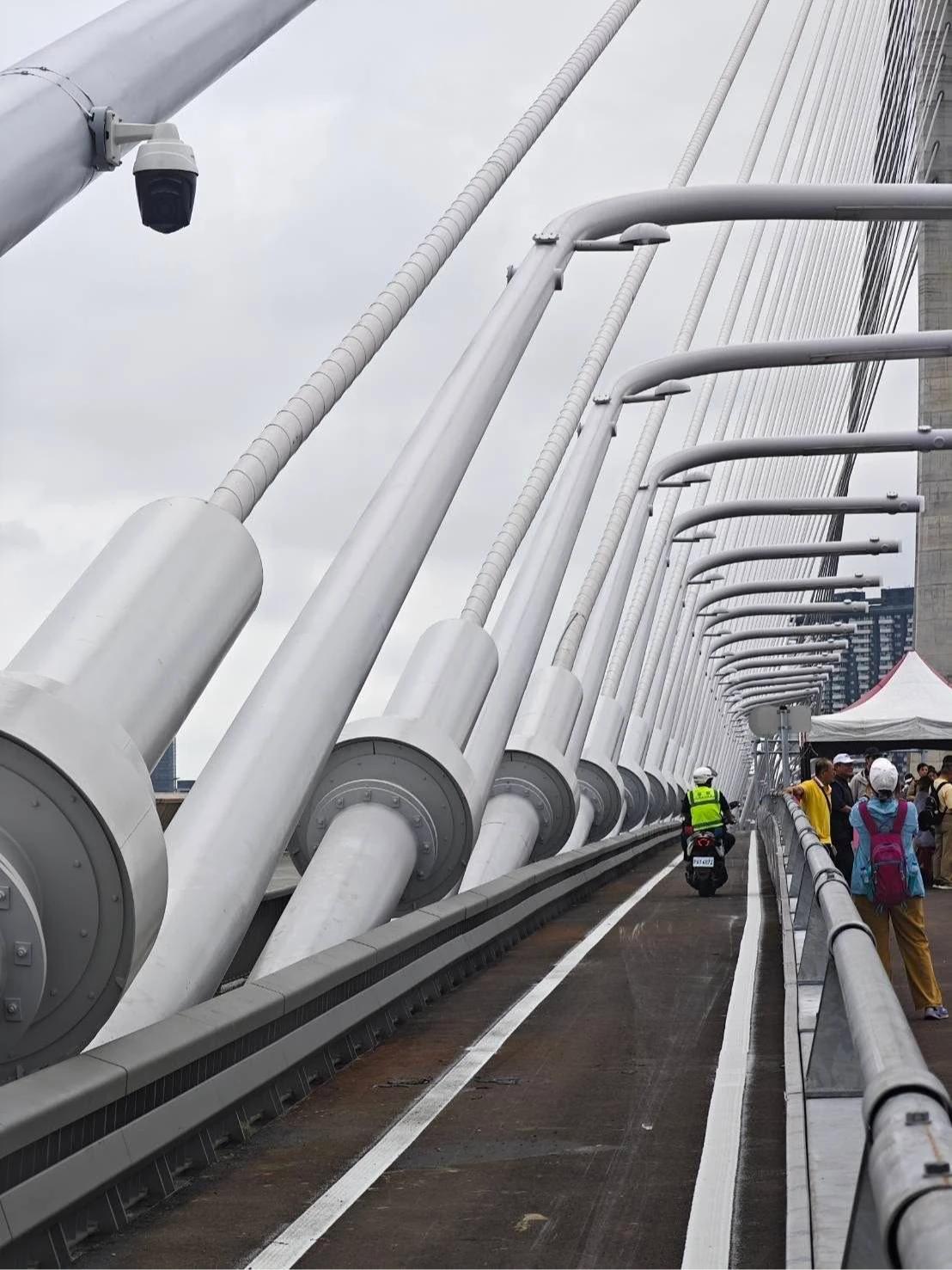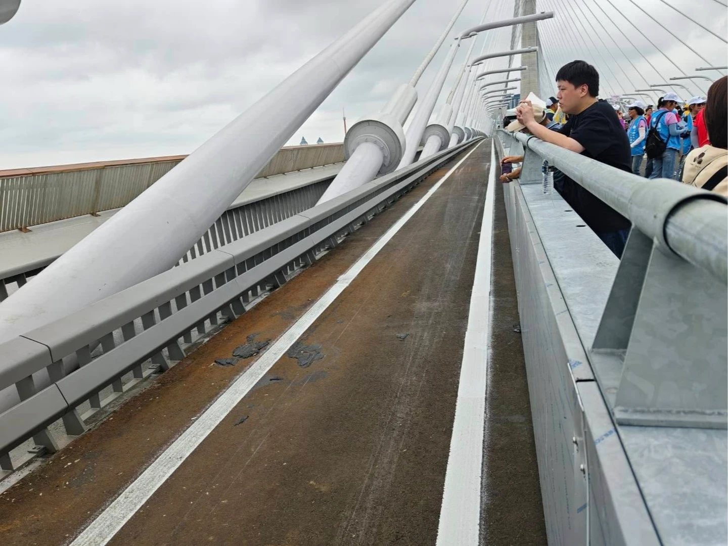 連接新北市淡水與八里的淡江大橋預計於5月12日正式通車,主橋全長約920公尺,為世界最長跨距的單塔不對稱斜張橋。為迎接這項重大建設,近期官方舉辦了多場漫步、路跑與自行車活動,吸引上萬民眾參與見證。然而,隨著民眾實地登橋觀察與相關照片在網路上大量曝光,橋上的車道設計,特別是機慢車道的寬度,引發了廣大機車族與交通平權倡議者的質疑與擔憂。