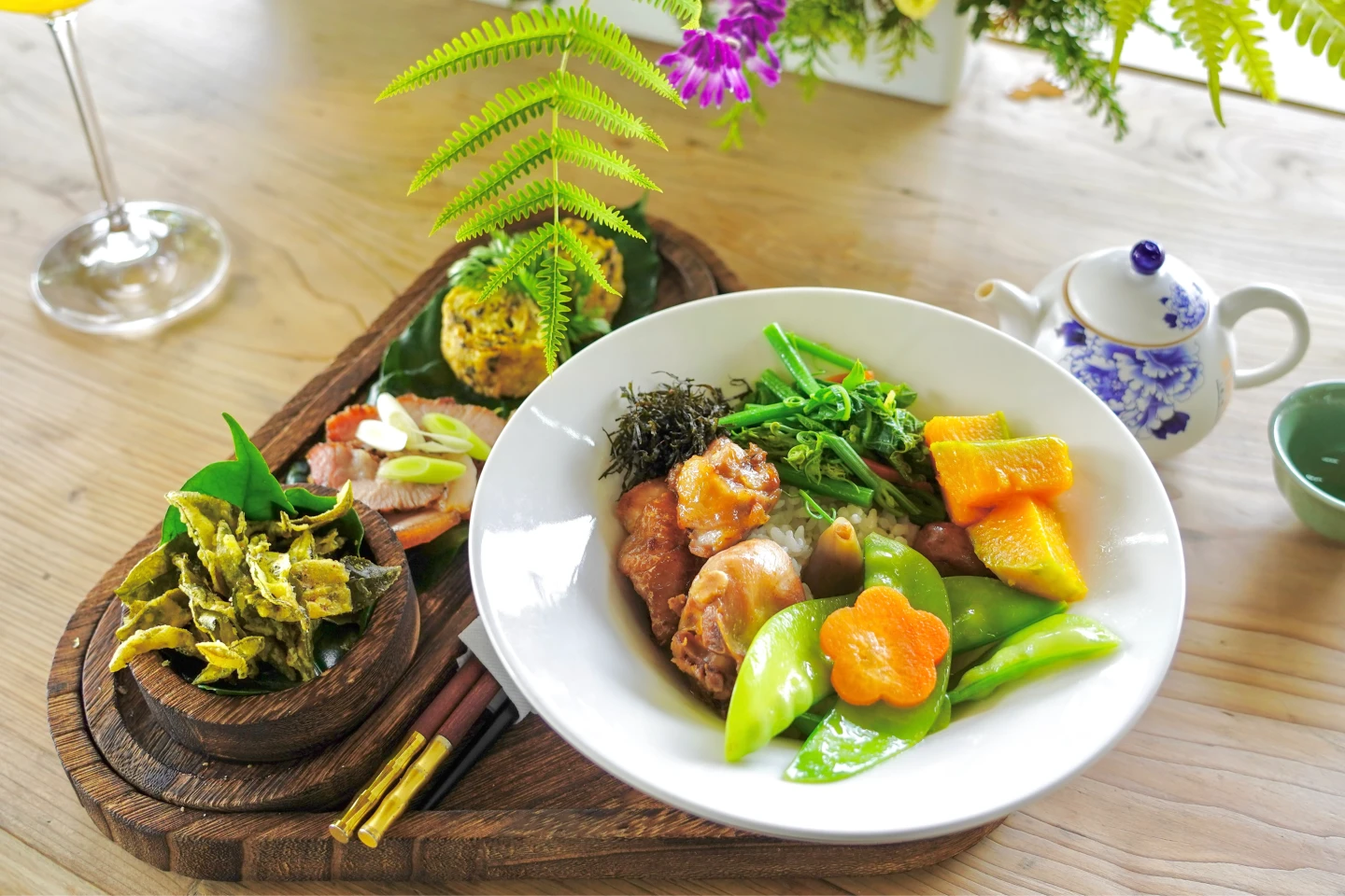 行程最後前往「生力農場」,在群山環繞下享用精緻的茶入菜料理,飯後移步戶外平台,來杯手沖咖啡,或是參加品茗導覽,讓身心再次沉浸在阿里山中。