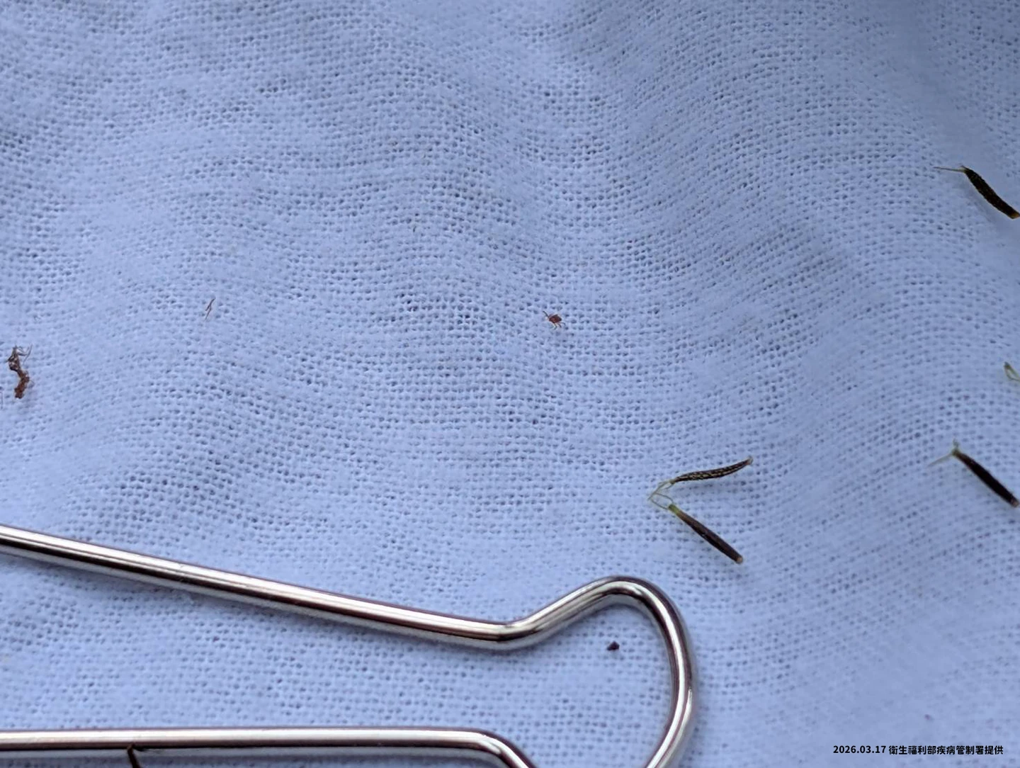 照片為採獲之蜱蟲,非發熱伴血小板減少綜合症病媒蜱蟲種類。疾管署提供
