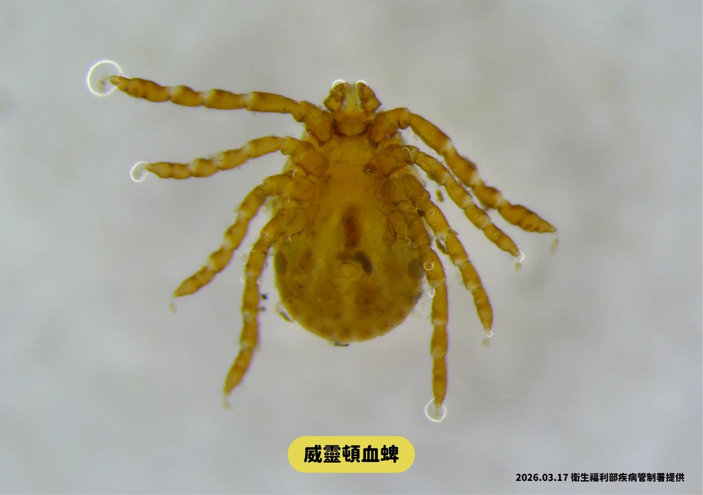 老翁住家外抓到的是威靈頓血蜱,非SFTS病媒。疾管署提供