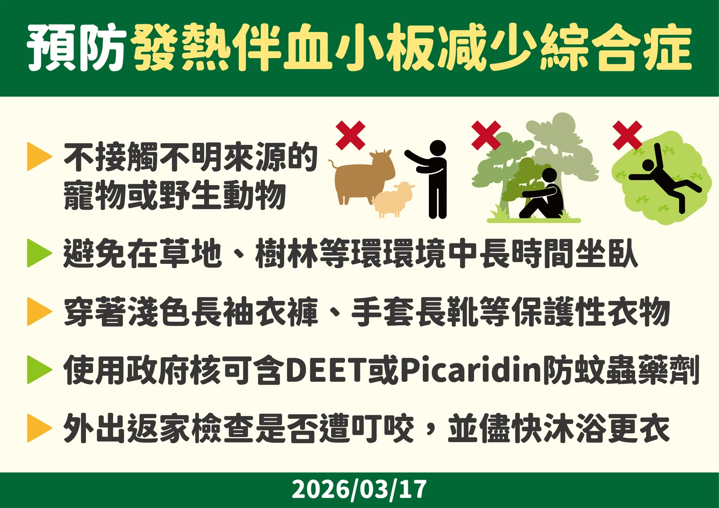 預防發熱伴血小板減少綜合症。疾管署提供