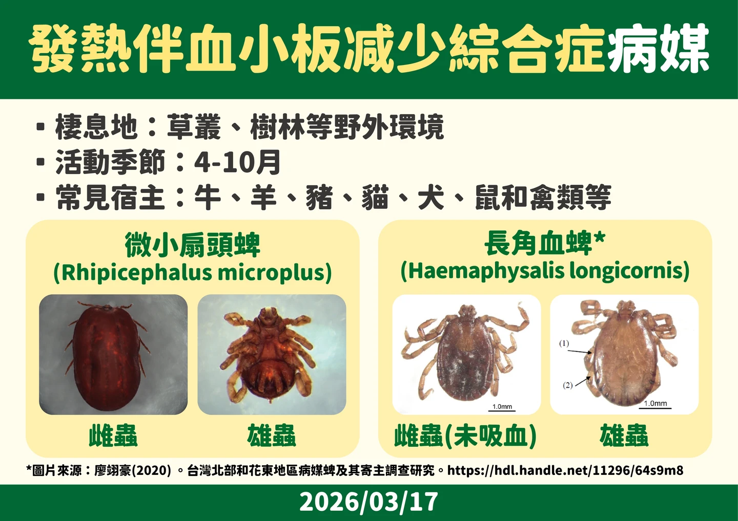 發熱伴血小板減少綜合症的病媒。疾管署提供