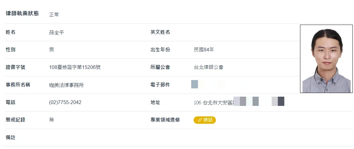 今天下午新北市刑大偵七隊兵分多路,持拘票、搜索票前往孫全平位於北市的律師事務所及住處搜索,搜扣相關證物,稍早帶回新北市刑大,目前正在偵詢中。