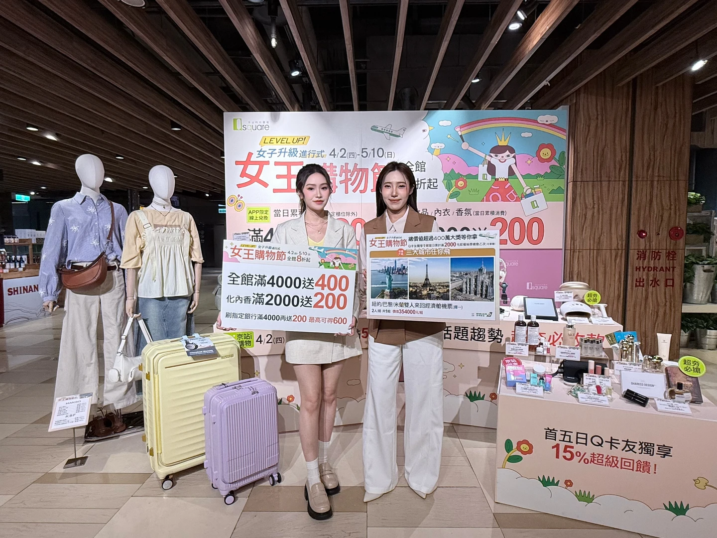 京站時尚廣場女王節4月2日至5月10日啟動「LEVEL UP!女子升級進行式」計畫,首五日限定Q卡友最高享600元的回饋優惠,線下刷中華郵政/星展滿4000送200元,再加上化妝品/內衣/香氛當日滿2000元送200元、4000元送400元(累積贈送),總回饋率高達15%。