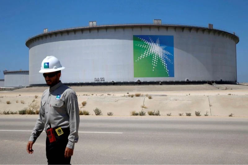 一名沙烏地阿美(Aramco)員工在位於Ras Tanura的煉油廠與裝卸碼頭附近走動。法新社