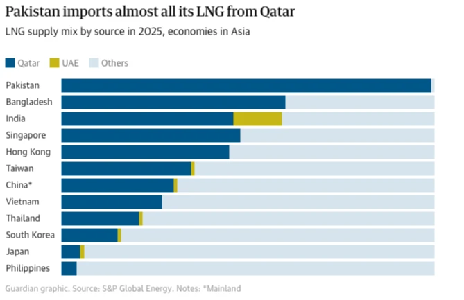 台灣對卡達LNG的依賴程度高於日韓。取自《 The Guardian》