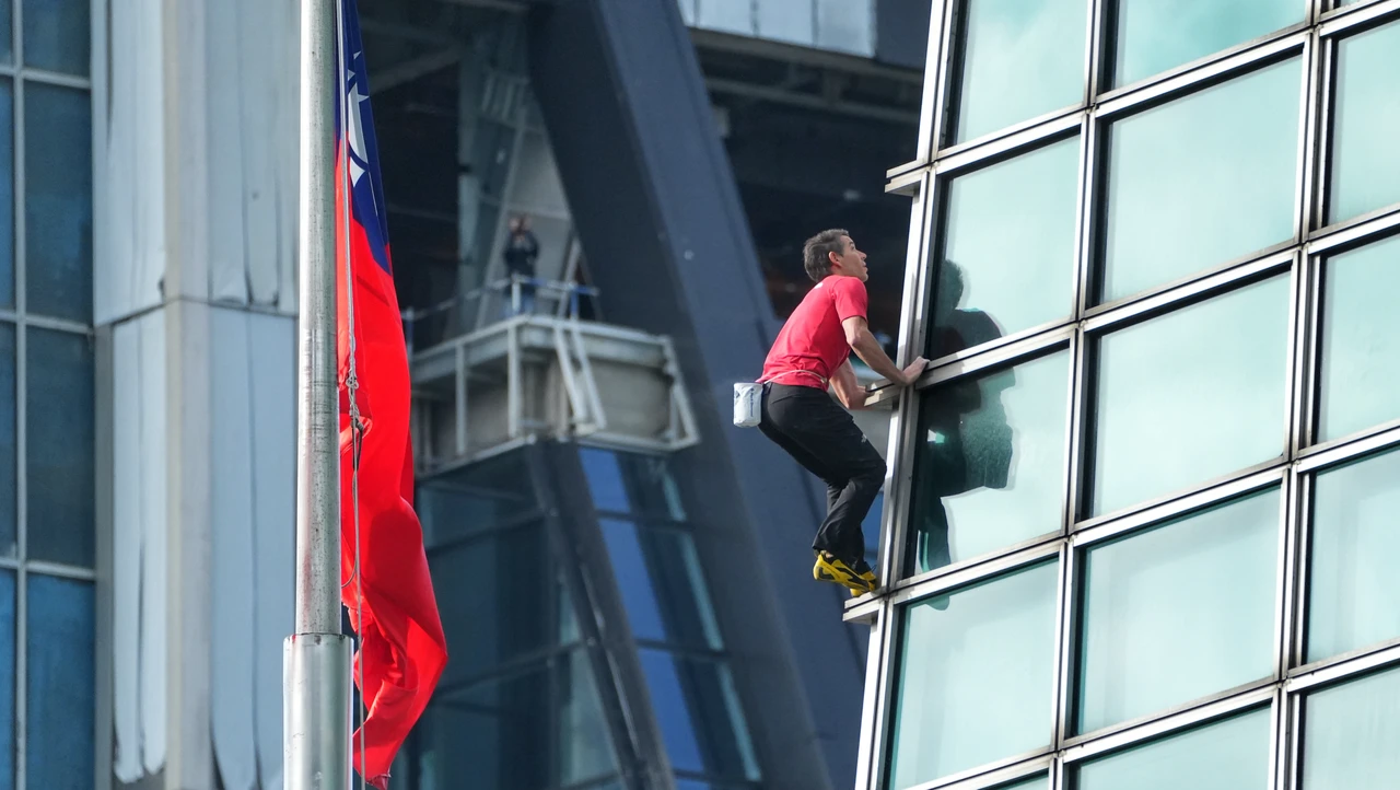 美國知名攀岩家艾力克斯霍諾德今天上午,挑戰史無前例的508公尺高的台北101高樓徒手攀登,而第26~90樓的八層竹節箱體段,被視為是最困難的環節。在歷經1小時31分鐘的奮戰,霍諾德終於成功登頂101。