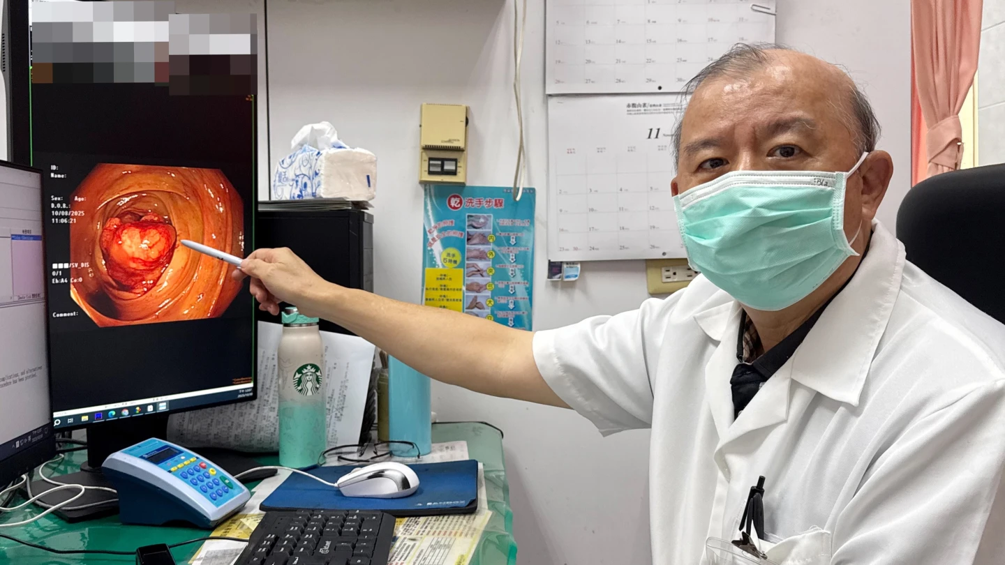 賴大豊表示,患者雖然多年前曾接受過腸胃鏡檢查,但近期已出現明顯排便型態改變,大便變細、帶血或黏液,以及長期腹部不適,卻未警覺身體警訊,直到出現貧血與頭暈症狀才被迫就醫,延誤了早期治療時機。