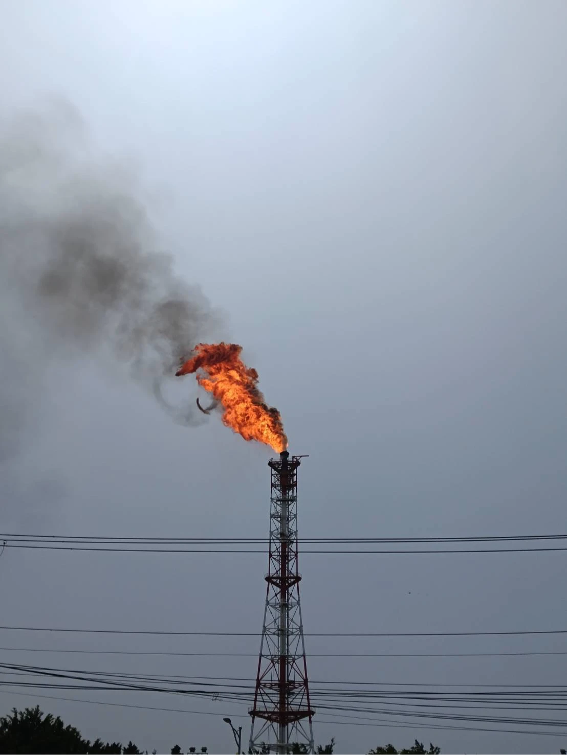 根據目擊者拍下的畫面,高聳燃燒塔頂端冒出橘紅色的烈焰,火勢猛烈,黑煙不斷從火球上方竄出。消防局於中午11時36分獲報,派遣1車3人前往現場警戒,環保局也派員前往監測。中午12時許,燃燒塔已無排放,狀況解除。