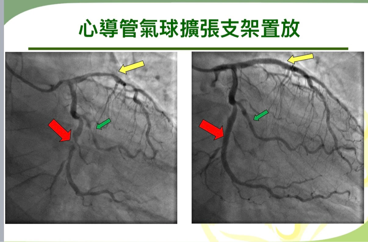 心臟內科醫師黃聖瑋指出,醫療團隊在與患者及家屬討論後,先針對左側兩條阻塞血管進行氣球擴張與塗藥支架置放手術,成功恢復血流,約一個月後,再針對右側冠狀動脈進行第二階段治療,最終順利解除三條血管阻塞危機,患者康復出院並已重返職場。