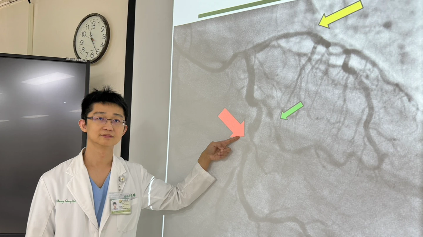 收治陳男的臺中醫院表示,急診團隊第一時間進行抽血檢查,發現心肌酵素明顯上升,高度懷疑為急性心肌梗塞,隨即施打抗凝血藥物並安排心導管檢查,結果顯示患者左前降支、左迴旋支及右冠狀動脈三條主要血管均出現嚴重狹窄,情況相當危急。