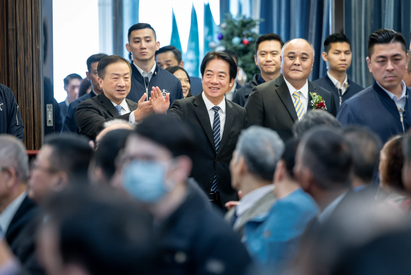 賴清德話鋒一轉說,民主政治就是政黨政治,政黨政治彼此競爭,不同政黨沒有關係,但同一個國家比較重要。平時不同政黨競爭又合作,但對外應該團結一致,我們只有一個國家,期盼共同努力奮鬥,讓國家更好。