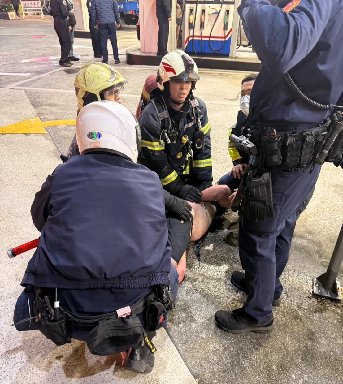加油站員工見狀趕緊拿出滅火器滅火,斜對面的新板消防分隊立即派遣消防車到場拉水線灑水,此時林男不明原因撲向消防人員,隨即遭到壓制,林男當時意識清楚,全身40-50%燒燙傷送亞東醫院急救。