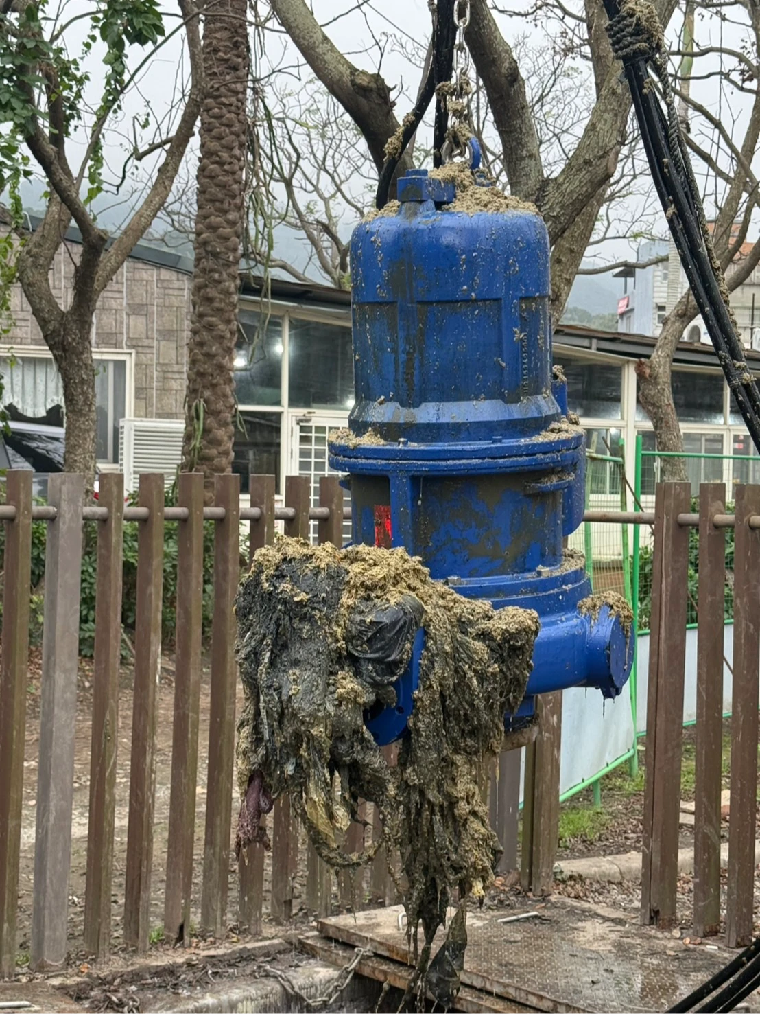 水利局說,這些民生廢棄物極易造成抽水機故障,引發污水回堵,只能透過定期維護清淤作業,才能維持污水輸送系統24小時正常運作。