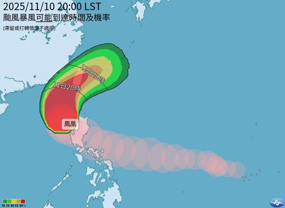 鳳凰料周三登陸!宜蘭山區「超大豪雨」警戒 西南陸地防12級強陣風