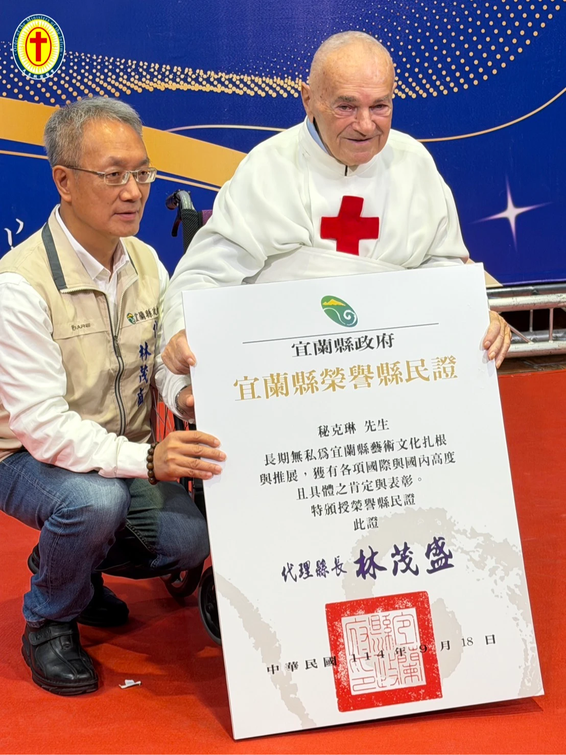 【記者陳力維/綜合報導】來自義大利的秘克琳神父(Fr. Gian Carlo Michelini),將一生奉獻給台灣與蘭陽平原超過一甲子,於今年(2026年)4月4日在羅東聖母醫院安詳辭世,享耆壽91歲。中央社報導, 他不僅是一手創辦「蘭陽舞蹈團」的藝術守護者,更是推動「宜蘭國際童玩藝術節」的重要推手。日前他才剛獲頒宜蘭縣榮譽縣民證,如今安息主懷,他透過藝術將台灣與世界連結的深情奉獻,留給台灣社會與無數學子無限的追思。