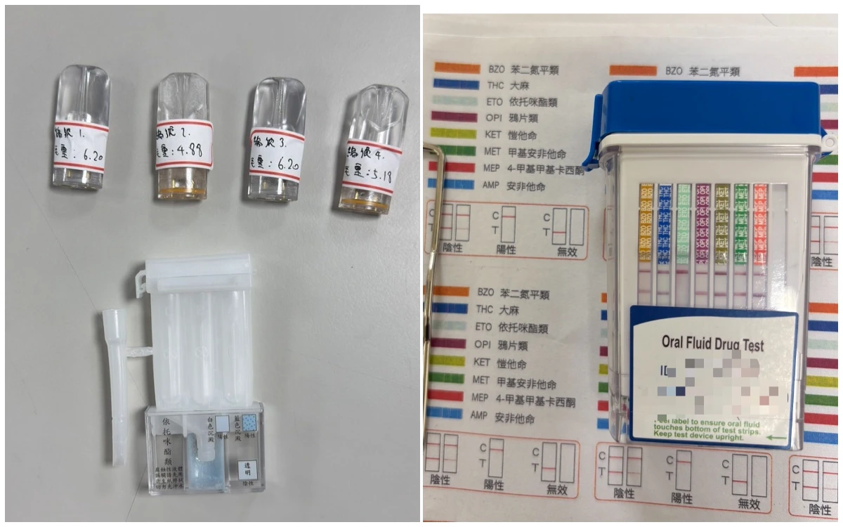 警消獲報派員趕抵現場,檢視僅林男肢體多處擦挫傷,緊急協助送醫,所幸沒有生命危險。警方調查,事故雙方駕駛沒有酒駕,以唾液快篩試劑檢驗,林男呈依托咪酯陽性反應,並於林男車內搜出依托咪酯煙彈1顆及吸食器1組,黎女身上也被搜出依托咪酯煙彈3顆,兩人都被帶回。