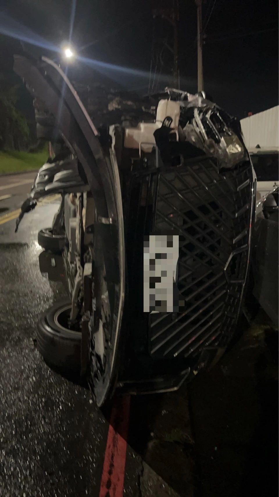據悉,自稱從事服務業的林姓男子(20歲),昨天晚上9時許開車載黎姓女友外出找朋友,行經新莊中環路一段與環漢路三段口,未注意對向車道汪女(44歲)駕駛的車輛已從環漢路三段左轉往中環路,攔腰追撞,林男車輛失控,衝往對向車道後翻覆。
