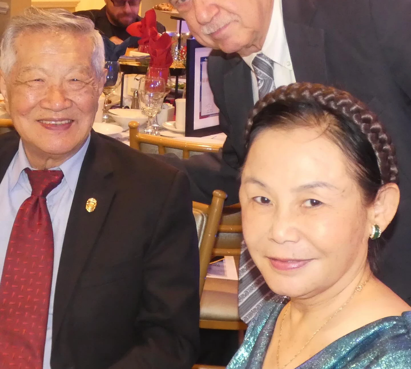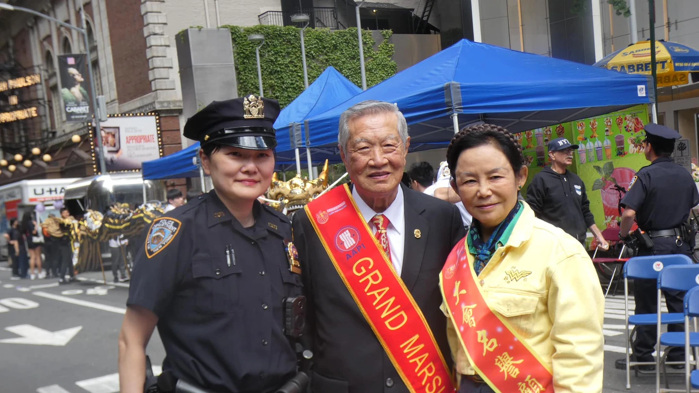 李昌鈺(中)及太太蔣霞萍(右)與華裔警員合影留念。取自李昌鈺臉書 zoomin