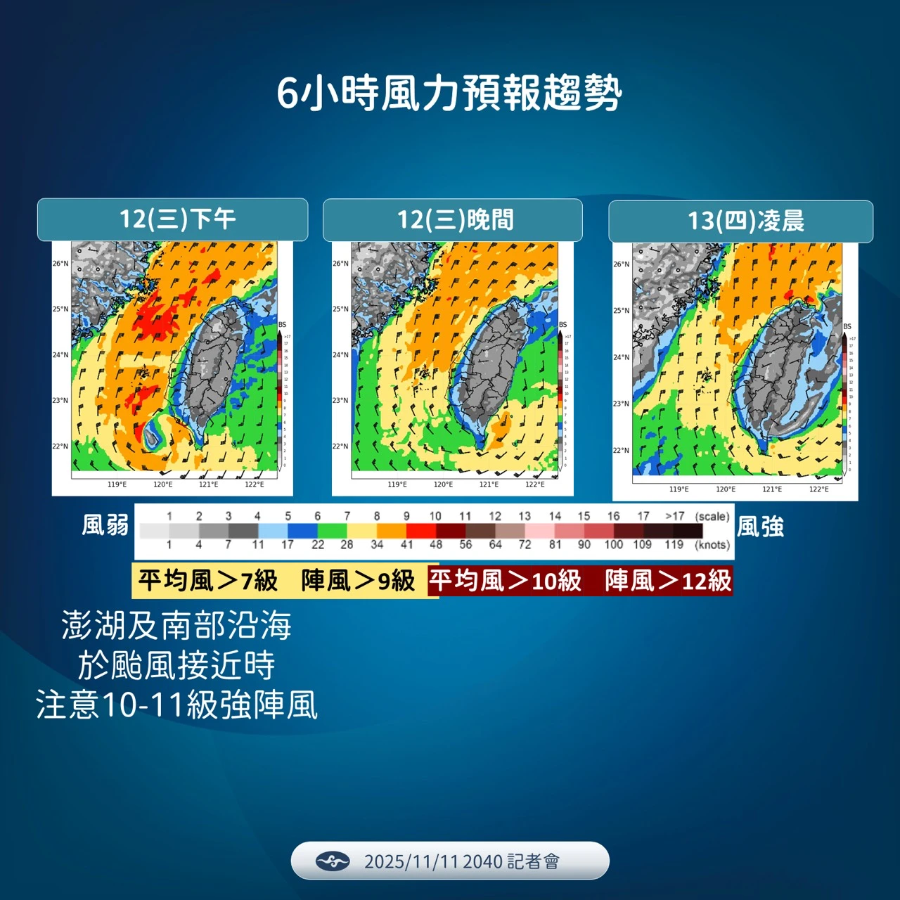 明日強陣風預警:高屏地區將達9至10級