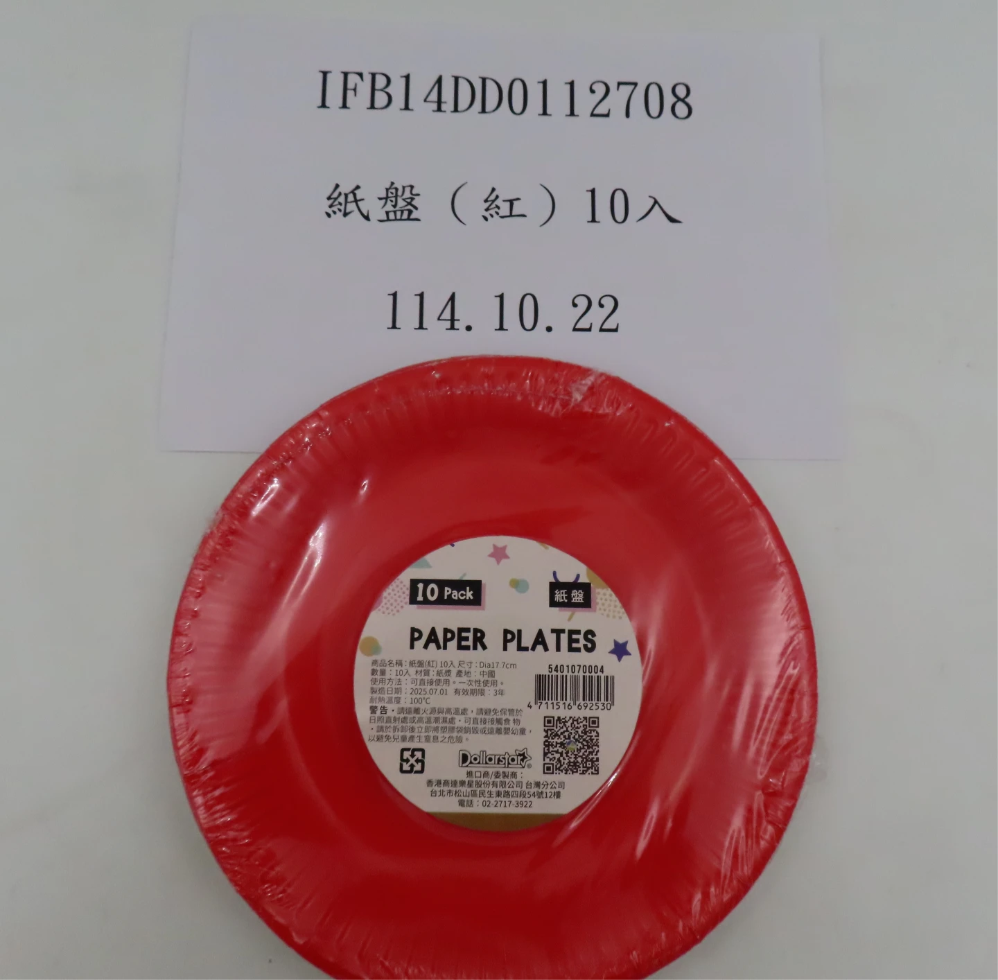 香港商達樂星股份有限公司台灣分公司從中國大陸輸入的紙盤,製造廠為寧波聚洵進出口有限公司,為模擬實際盛裝食品,放置於95℃的4%醋酸中30分鐘,蒸發殘渣值為2529ppm,共29.82公斤全退運或銷毀。