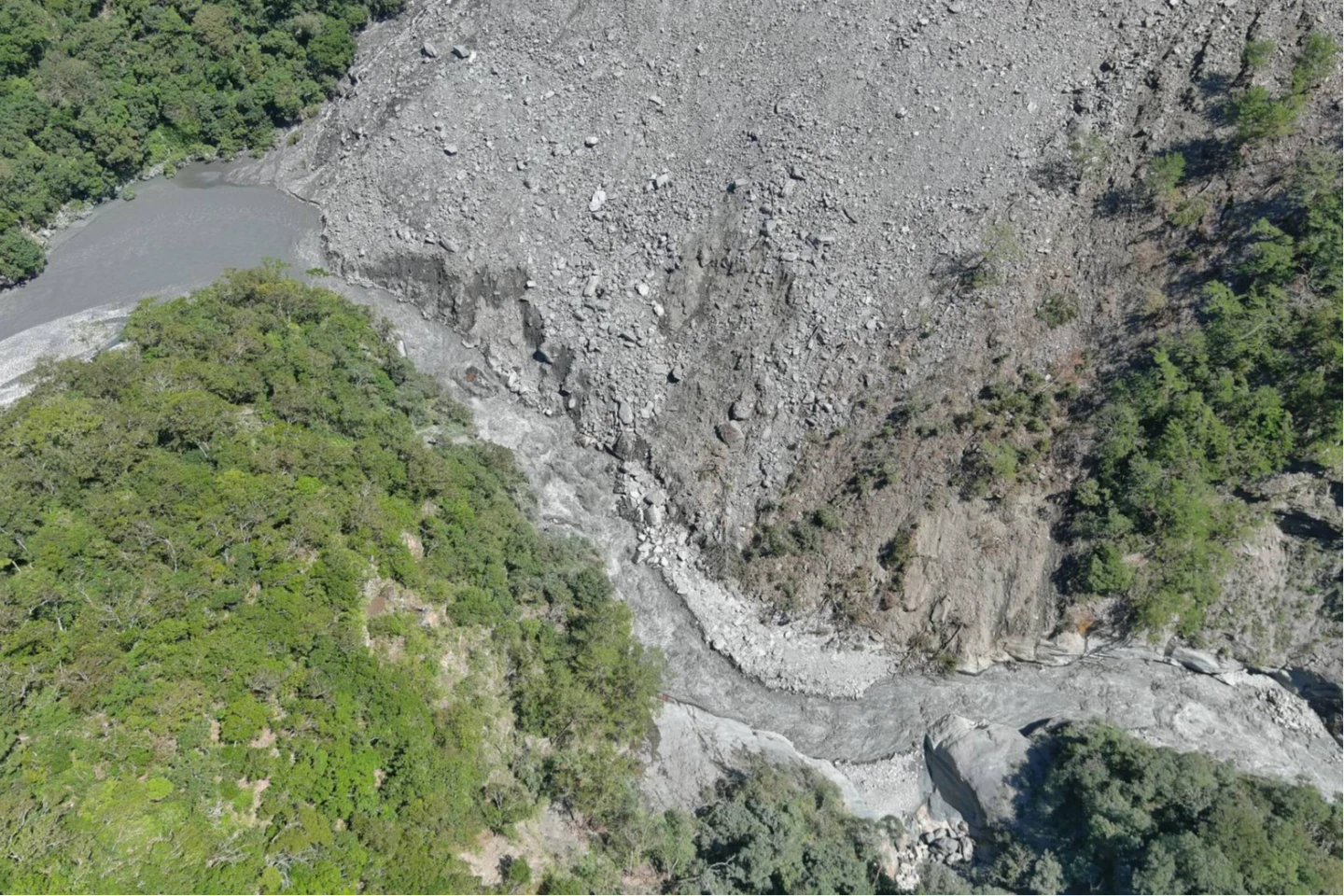 台東分署表示,該崩塌區位於關山事業區第13林班下方新武呂溪河段,距下游初來橋約 16.5 公里,下游河段為 V 型峽谷,與部落相對高差約 80 至 200 公尺,經評估不致對下游聚落安全造成疑慮;另崩塌範圍經成大團隊依影像計算推估,崩塌面積約 4.2 公頃,初估崩塌量體約9.8萬立方公尺,崩塌區已可見岩盤出露,坡面多為殘存材料,未見大量不安定材料。