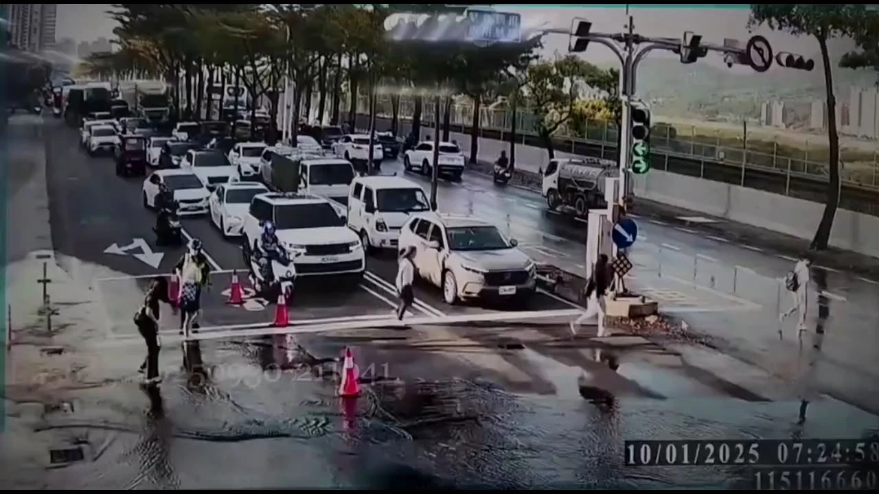 目前轄區警方仍擺放三角錐持續交通管制,後續待台水公司派員到場處置,釐清相關原因及後續施工修復作業。