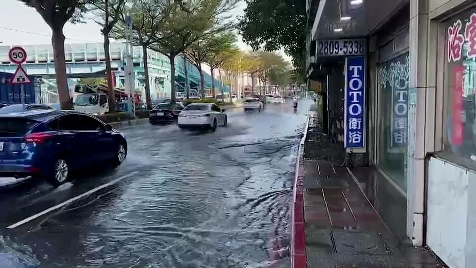 有片|淡水自來水管爆裂路面成小河!車輛涉水而過 台水急關水閥