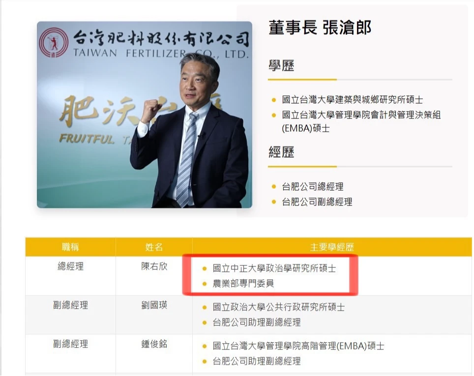 台肥表示,總經理之聘用,均經嚴謹資格審查程序,無虛偽隱匿之情事,其學經歷背景於就任時已依法公告,公開透明,總經理於聘任程序中提交予董事會審議之所有學歷與經歷文件,經查核後確認皆屬真實無誤。