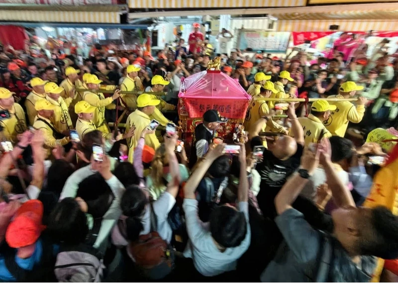今年進香報名人數突破46萬,再度改寫歷史紀錄。12日白天起,白沙屯周邊便人潮不斷,橘帽香燈腳從全台蜂擁而至,將拱天宮內外擠得水洩不通。鑾轎凌晨出發後,沿途民宅、企業紛紛設案恭送,彩炮鞭炮聲此起彼落,信眾熱情高呼「媽祖我愛你」,聲勢浩大。