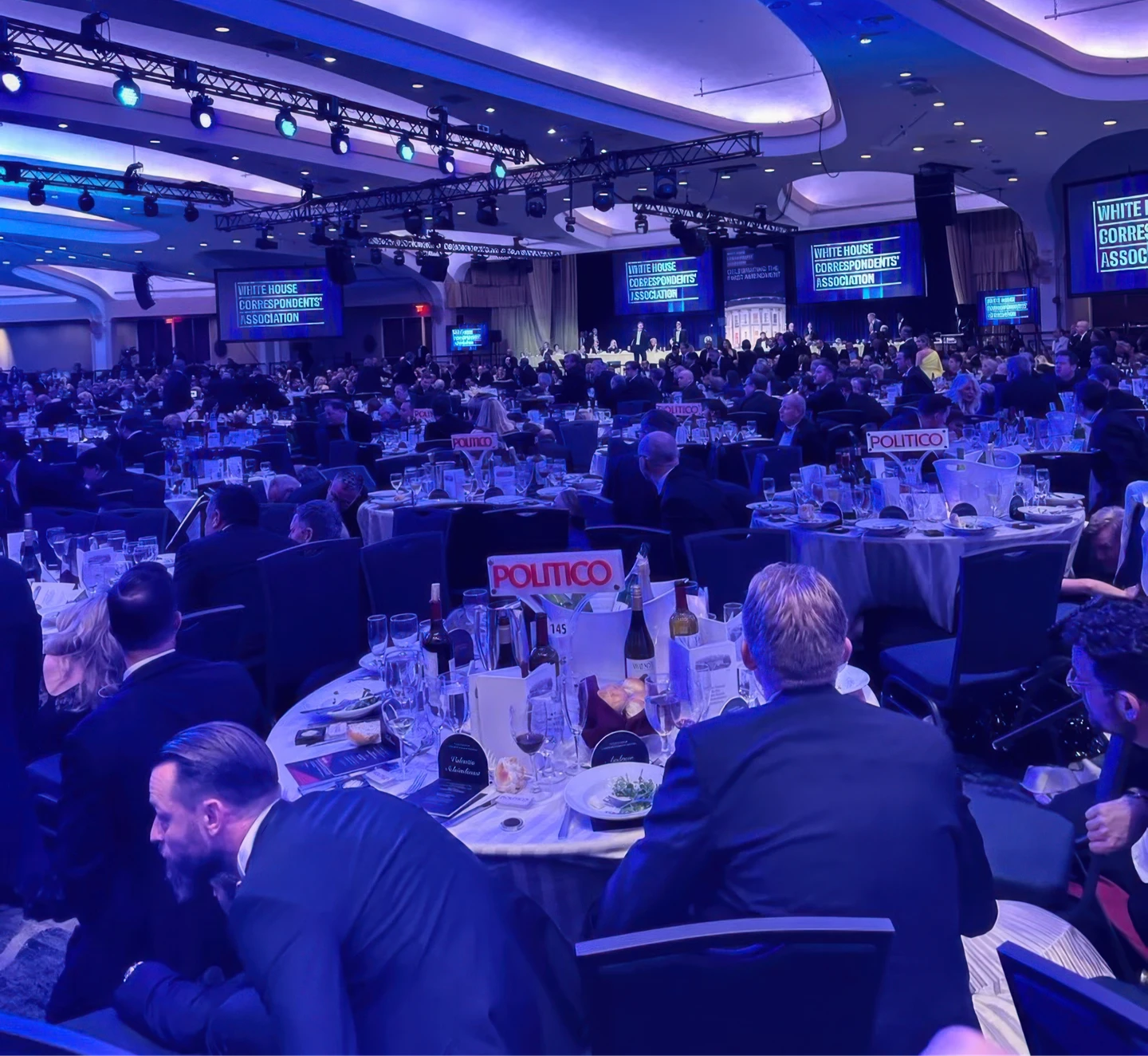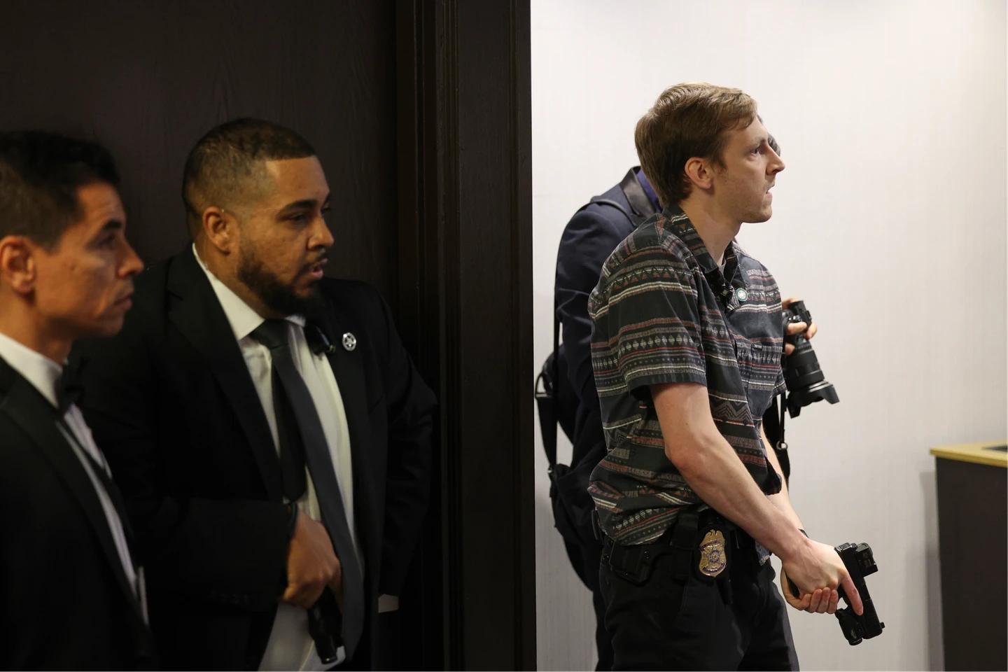 川普高級顧問米勒(Stephen Miller)和美國聯邦調查局(FBI)局長巴特爾(Kash Patel)也被護送離開現場,媒體與其他與會人員仍留在宴會廳內。