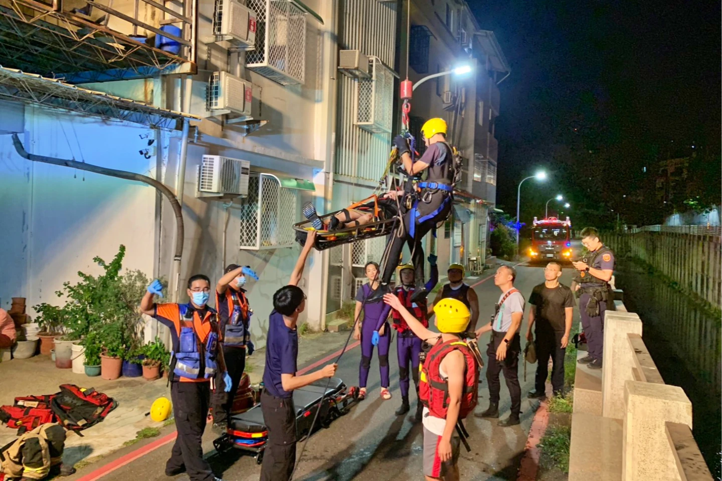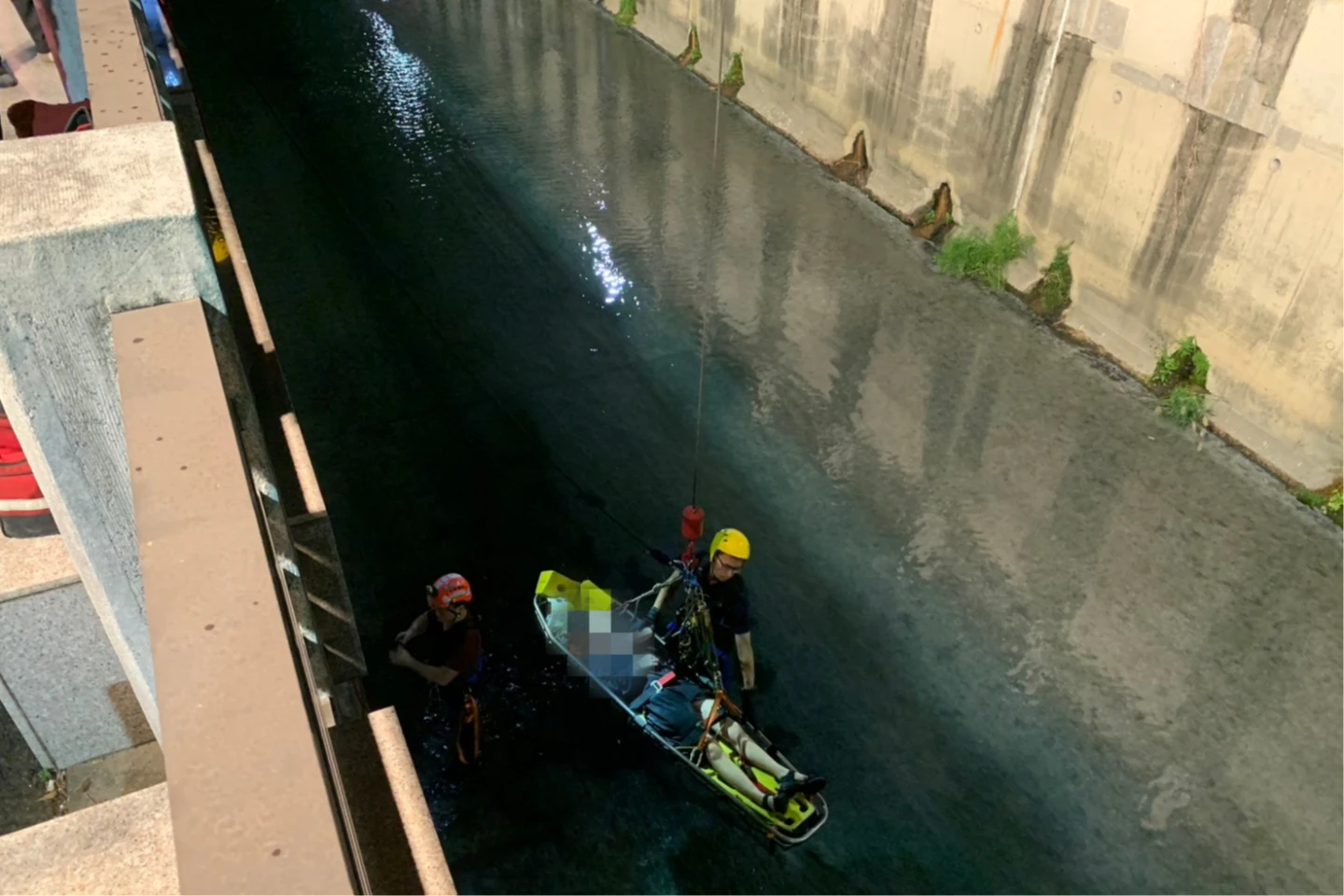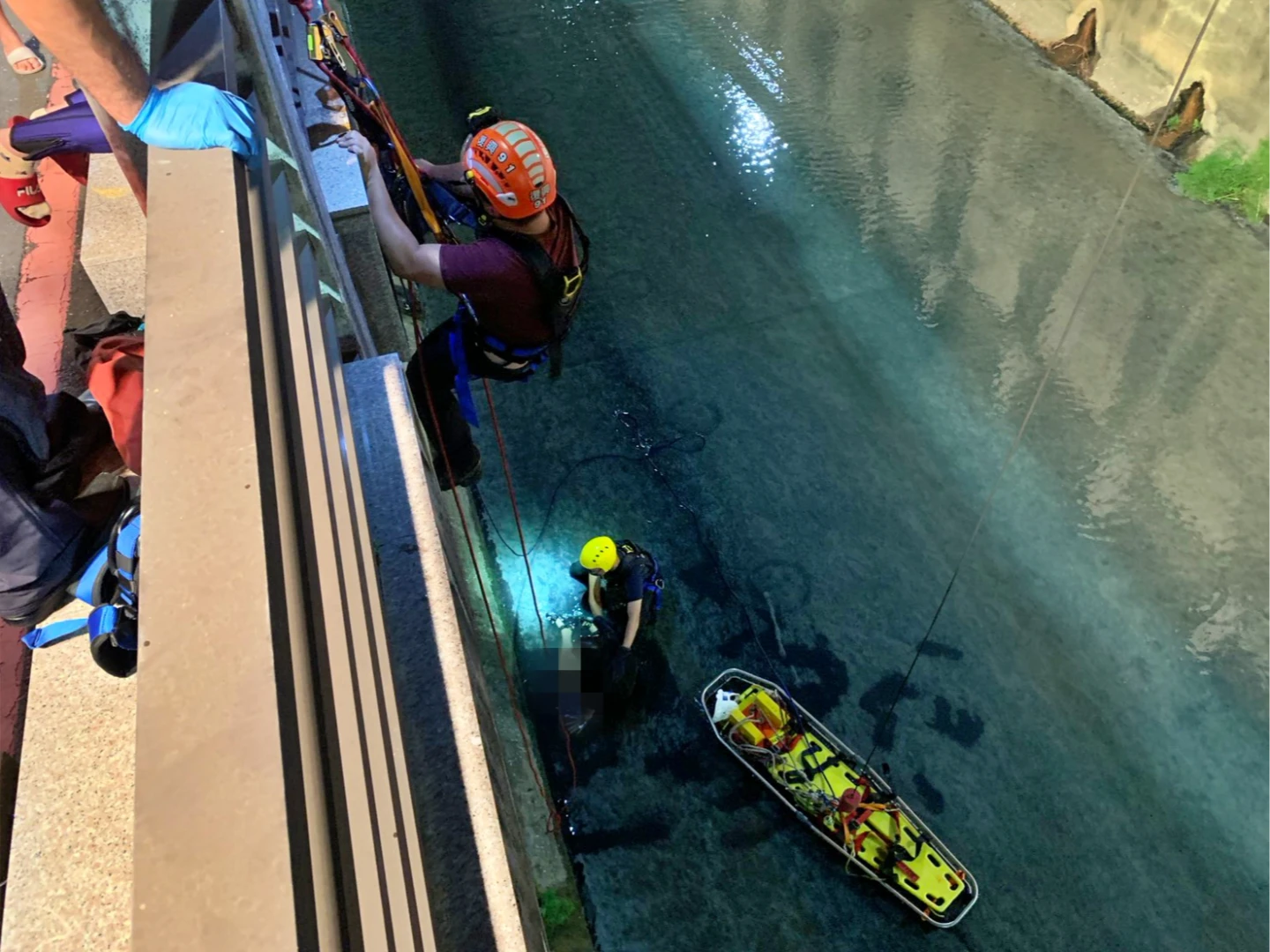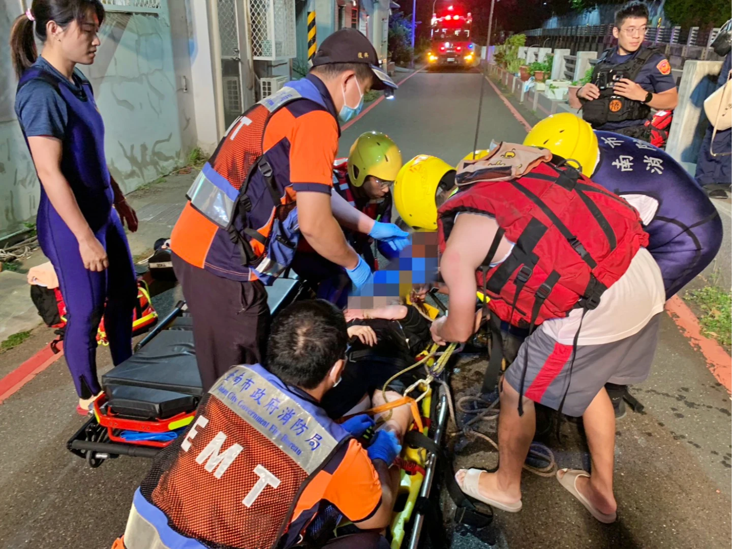 警消費了一番功夫才將人吊掛上岸,幸運僅受皮肉傷,於凌晨3時16分將其送往成大醫院,無生命危險。