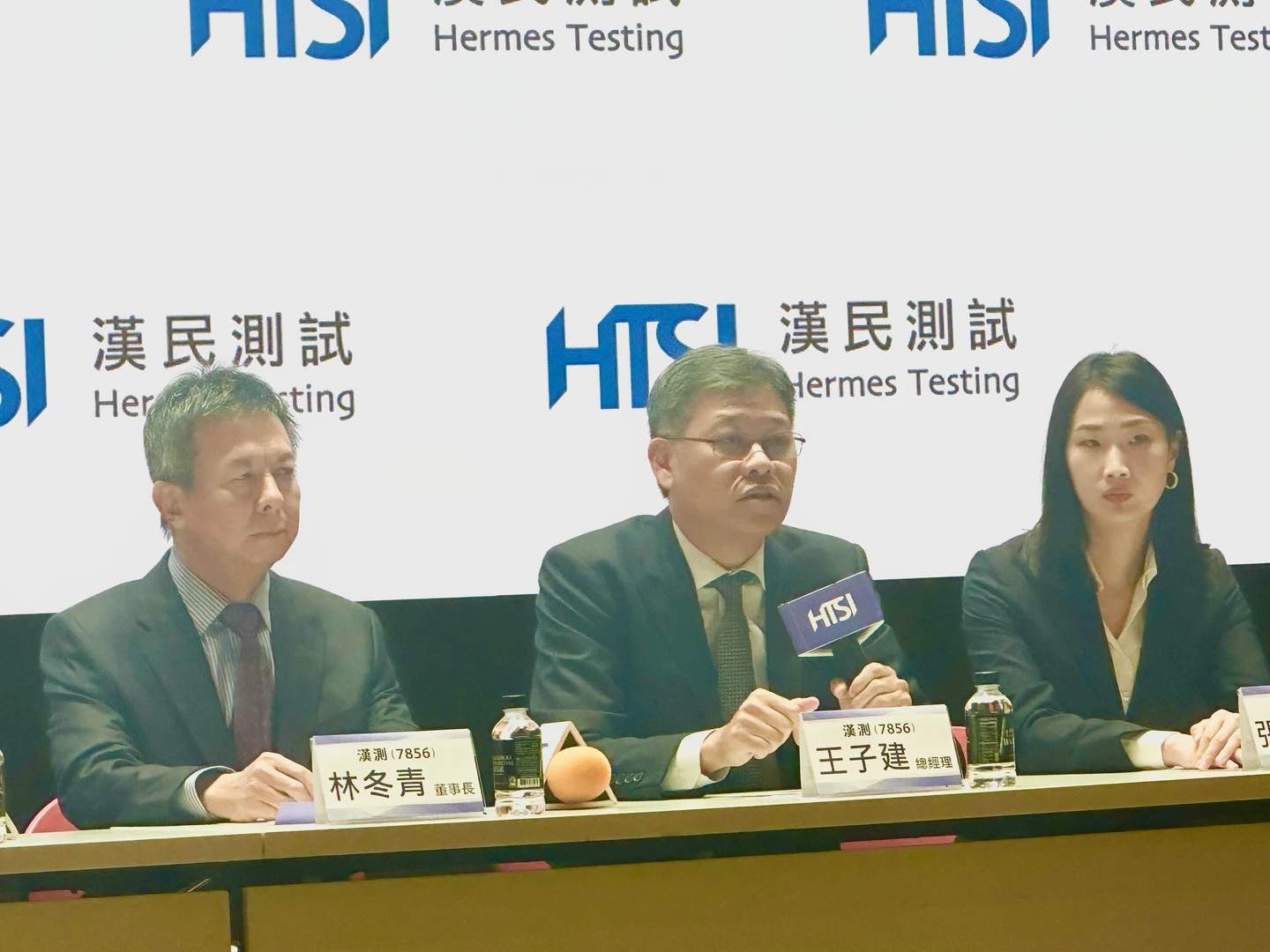 漢測今舉行法說會。圖中為董事長林冬青,總經理王子建(右二)。蕭文康攝 zoomin