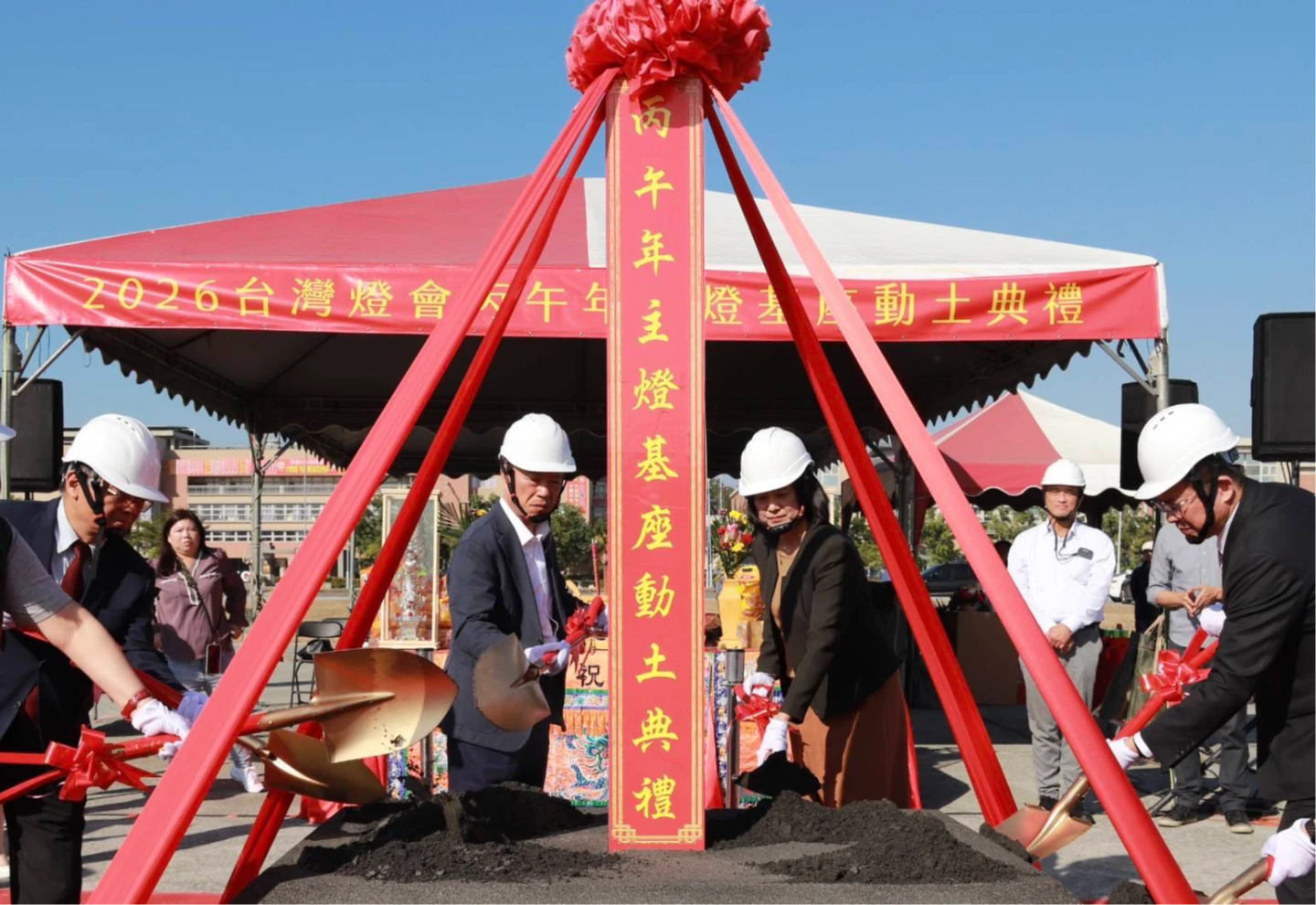 今(6)日舉辦2026台灣燈會主燈基座動土儀式,由交通部觀光署陳玉秀署長及嘉義縣翁章梁縣長率工作團隊共同祈福,祈求燈會施工順利、活動圓滿成功,為明年全台最受矚目的燈光盛會揭開序幕。