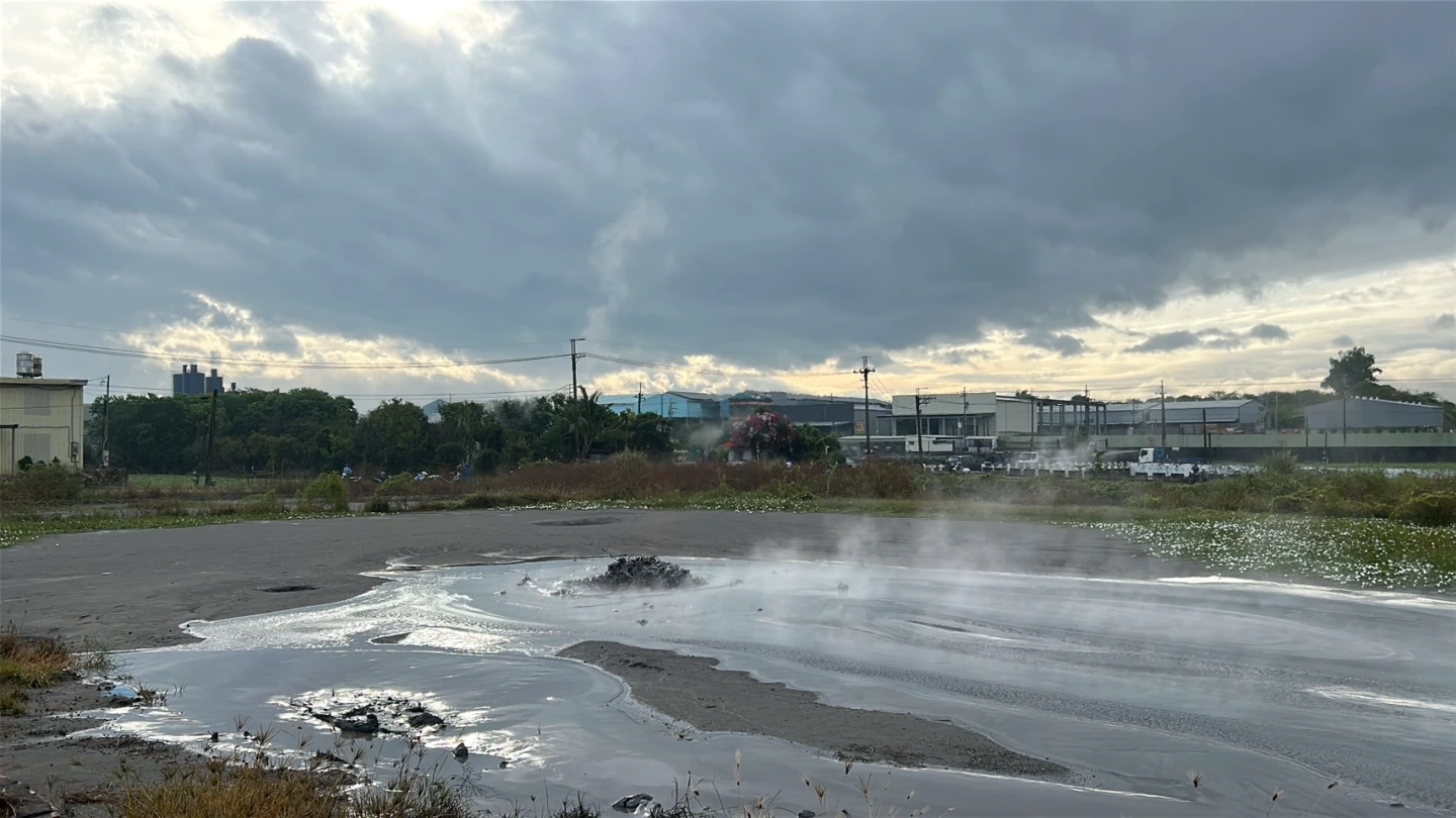 【記者王勇超/屏東報導】屏東縣萬丹鄉皇源聖殿周邊今天清晨5時許出現泥火山噴發景象,泥漿自地底竄出、氣味瀰漫,這是今年第二度噴發,上一次發生在6月26日。萬丹泥火山是當地著名自然現象,平均每年噴發1至2次,每次持續約10小時,中心溫度約攝氏60度,空氣中瀰漫濃烈甲烷味。