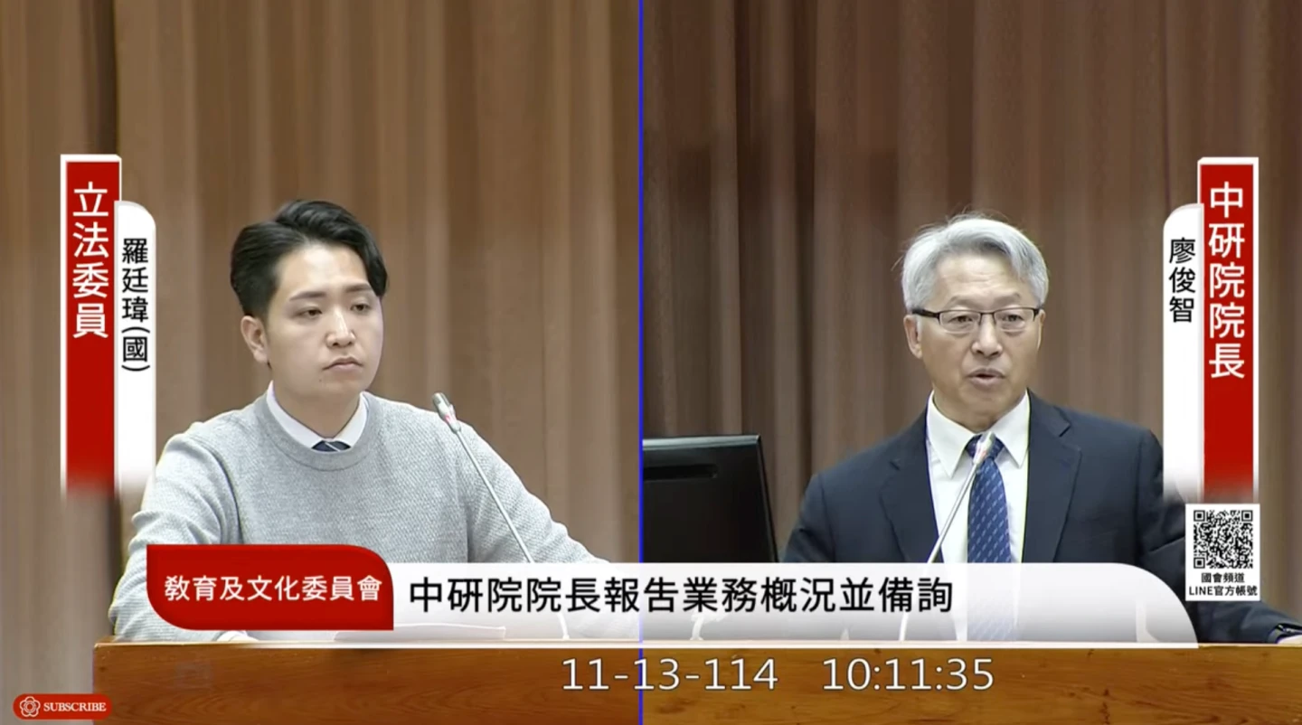 立法院教育及文化委員會今邀請中央研究院院長廖俊智,列席報告業務概況並備質詢。國民黨立委萬美玲指出,自己今年4月以此事質詢廖俊智,對方當時的回應是,客觀條件確實很困難,要有很好的條件吸引人才,包括薪水和機會,最重要是全民要善待研究人員,並且不要受政治干預、鼓勵他們要有企圖心。