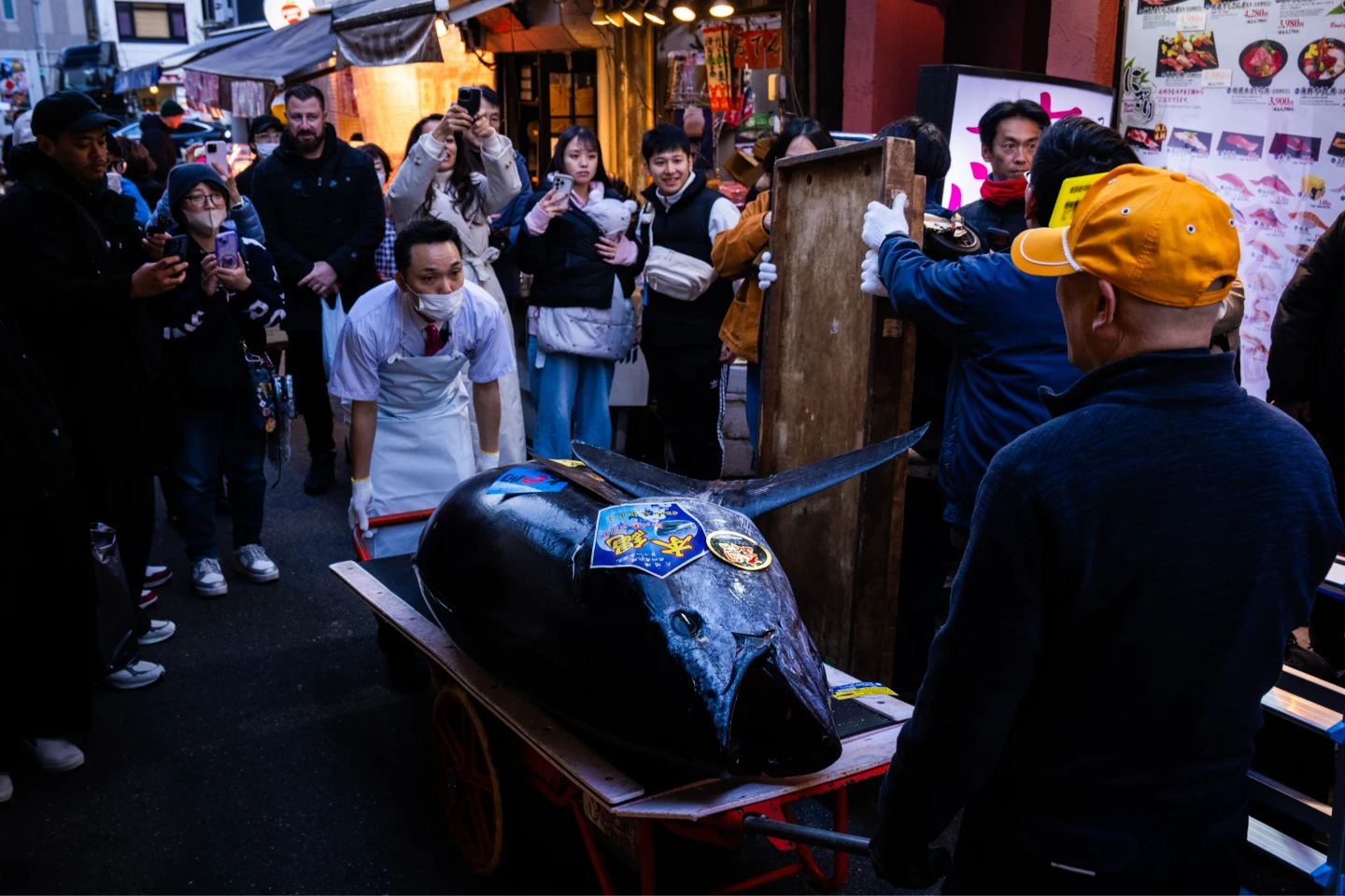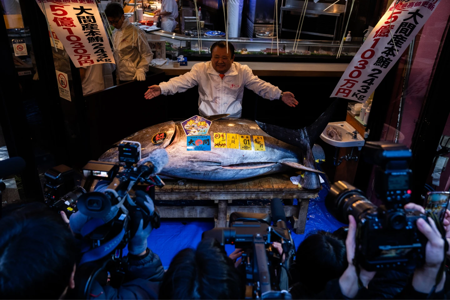 根據中央社引述日媒,黑鮪魚初競標象徵新年市場的好兆頭,為了讓漁民及相關從業人員更有幹勁,通常會由營業狀況良好的店家,以高於平常的價格得標,展現屬於商人的氣魄。