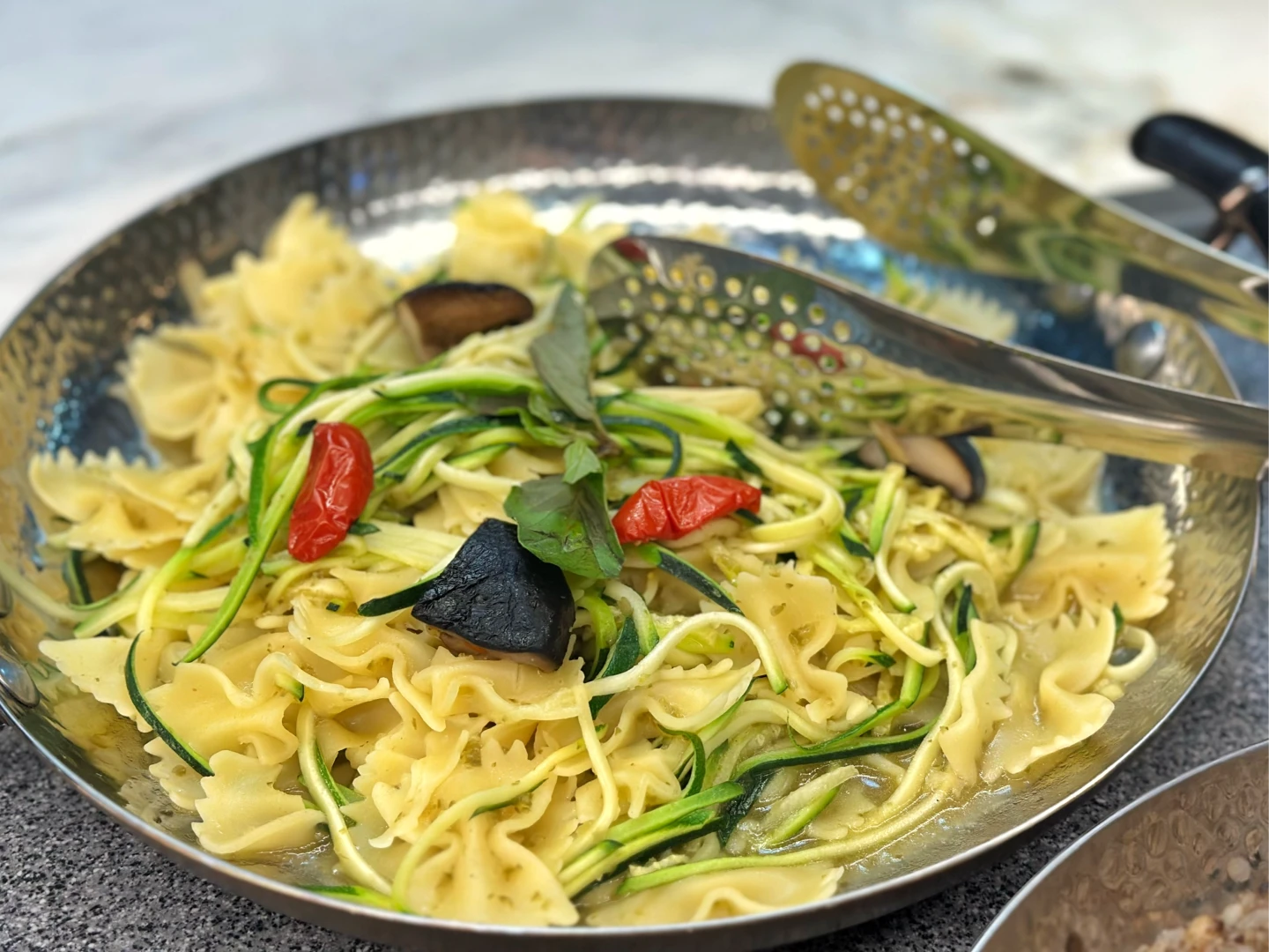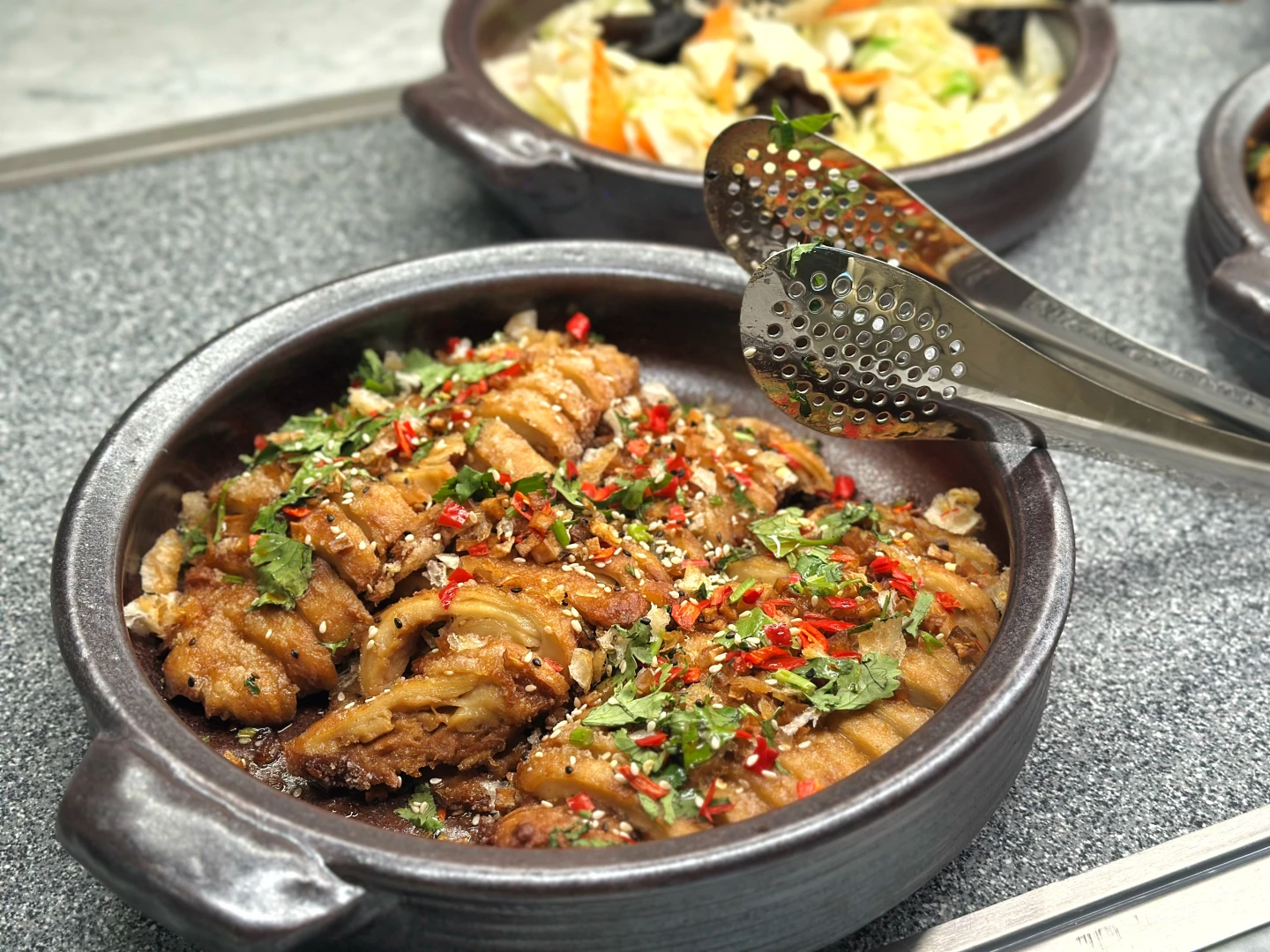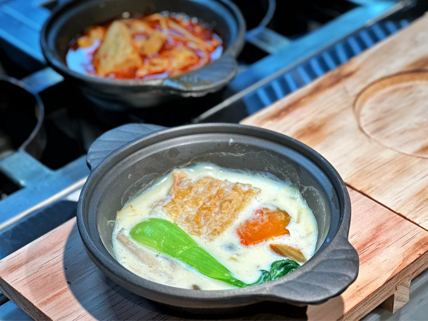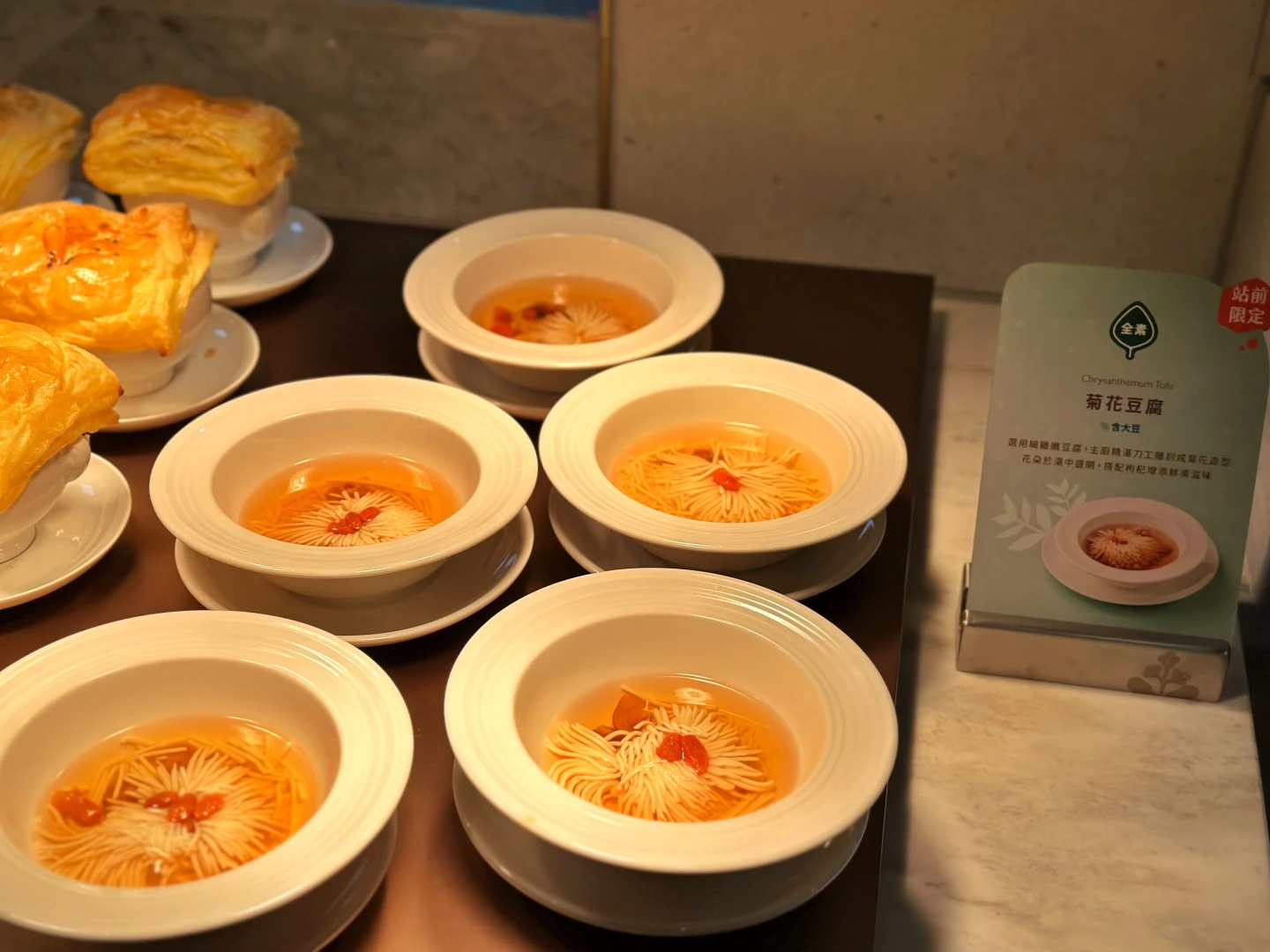 台北站前店更推出7道限定料理,包含「金桔剝皮椒香櫛瓜麵」、「旬蔬豆乳鍋」、「奶油南瓜燴時蔬」、「泰式椒麻酥排」、「金針酥扇」、「菊花豆腐」必吃,甜點則有「甜柿乳酪捲」,以新竹在地甜柿細膩融合綿密奶酪,限定於假日下午餐供應。