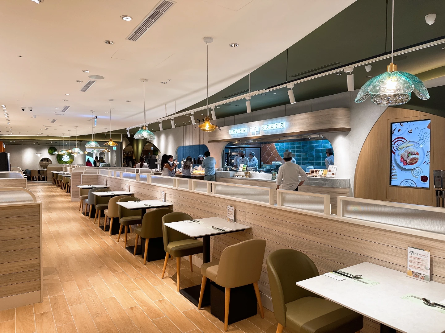 「果然匯」台北新光站前店12月23日於新光三越13樓開幕,占地260坪,擁有312個客席座位,餐台提供破百道料理吃到飽,首先「壽司區」提供唐揚菇乳酪加州捲、韓式鮮蔬飯捲、芋泥烤麩壽司、秋葵味噌壽司、三日苗捲壽司、炙燒番茄握壽司等;「天婦羅區」有黑蠔菇天婦羅、焗烤若醬櫛瓜、塔香蚵仔酥、甜梅山藥燒、牛蒡天婦羅等。