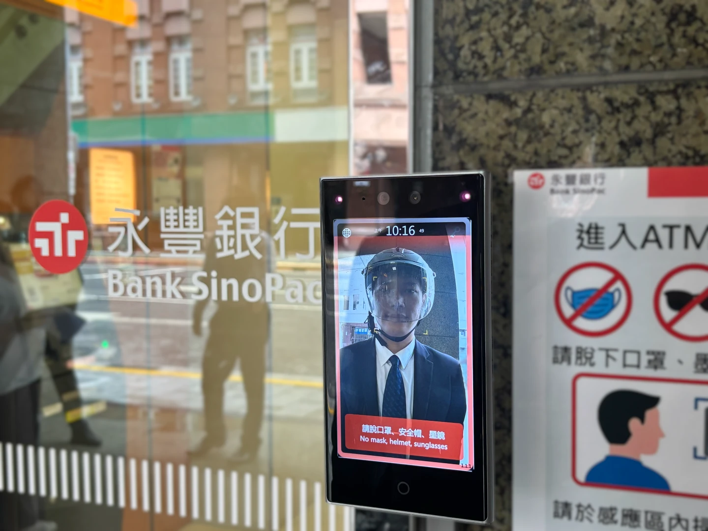 【記者盧麗蓮/綜合報導】銀行為了打詐,喝止車手在銀行取款,包括公股銀兆豐、一銀、合庫等銀行推出AI臉部辨識,若是戴口罩領錢將響起警示聲。新光保全協助永豐銀行導入「AI臉部辨識門禁管理方案」,像是城中分行導入「AI人臉辨識系統」,將ATM服務區的自動門「鎖上」,想領錢必須完整露出全臉才能「開門」進入,避免遮蔽五官者入內取款。