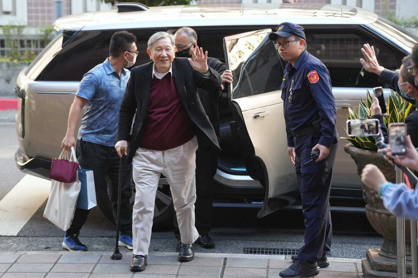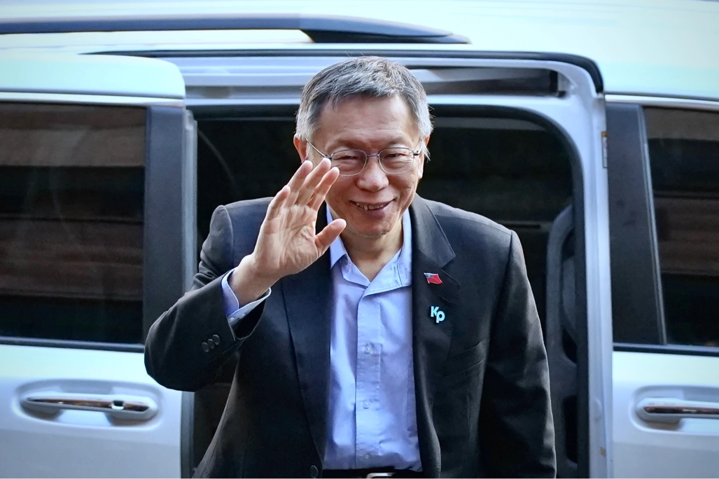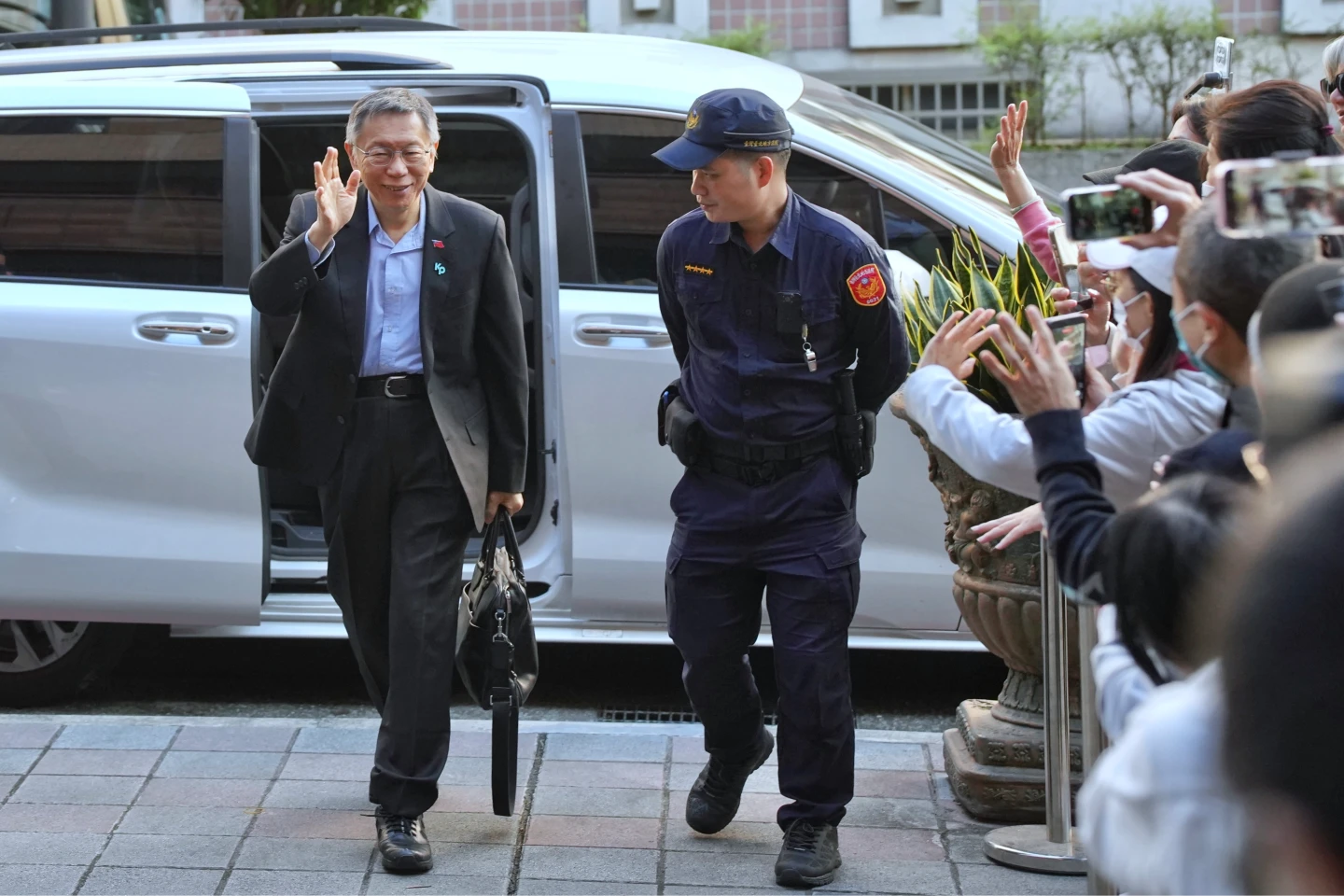 柯文哲今早準時出庭,下車看到大批小草高喊加油,柯也笑著揮手。