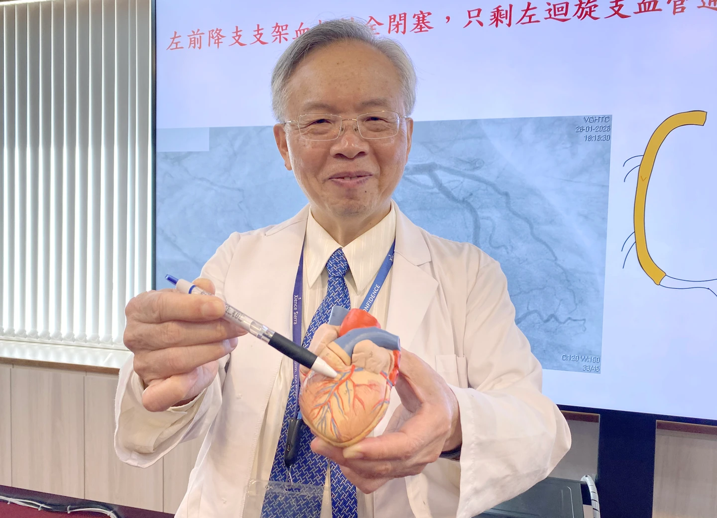 另一名60歲江姓男子病情更為凶險,他先前因左前降支冠狀動脈完全阻塞導致急性心肌梗塞,在彰化醫院緊急放置支架救回一命,未料出院當晚再度胸痛、血壓驟降,再次確診心肌梗塞,轉送台中榮總後檢查發現三條主要冠狀動脈已有兩條完全阻塞。