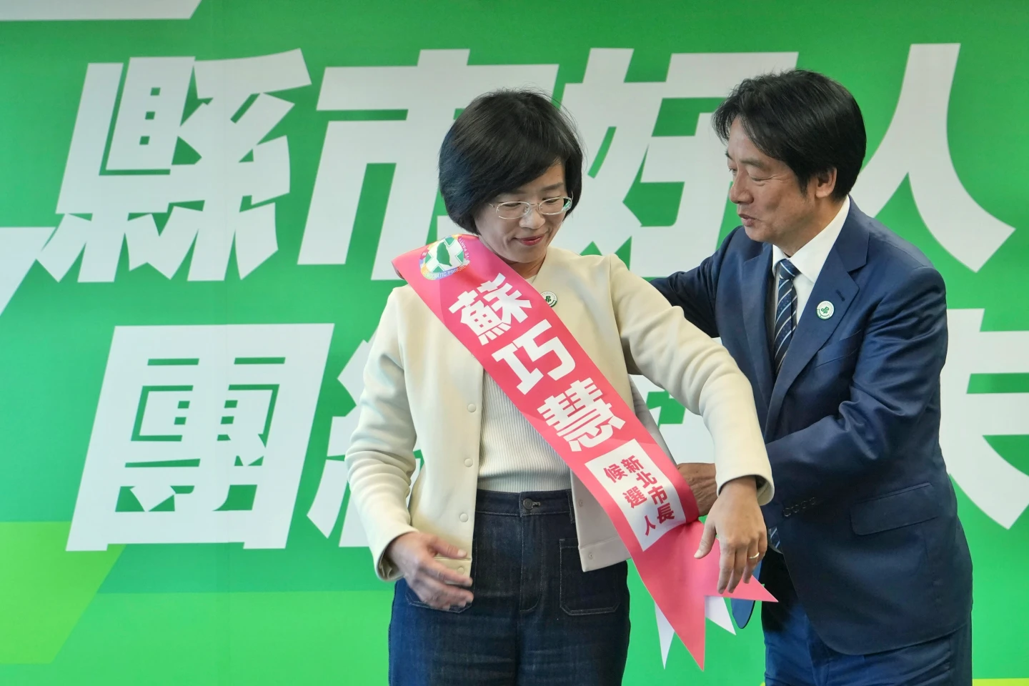 【記者施智齡/台北報導】民進黨2026佈局往前邁進,繼10月提名4縣市首長參選人,中執會今通過徵召立委蘇巧慧選新北市長、苗栗議員陳品安「跳級」選苗栗縣長,黨中央於會後召開「縣市好人才 團結拚未來」記者會,黨主席賴清德、秘書長徐國勇率2戰將出席,賴並將替蘇、陳親繫競選背帶祝福。