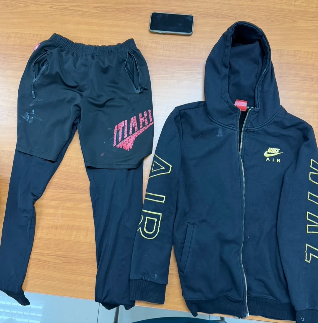 警方查扣作案時所穿衣物及手機。翻攝畫面