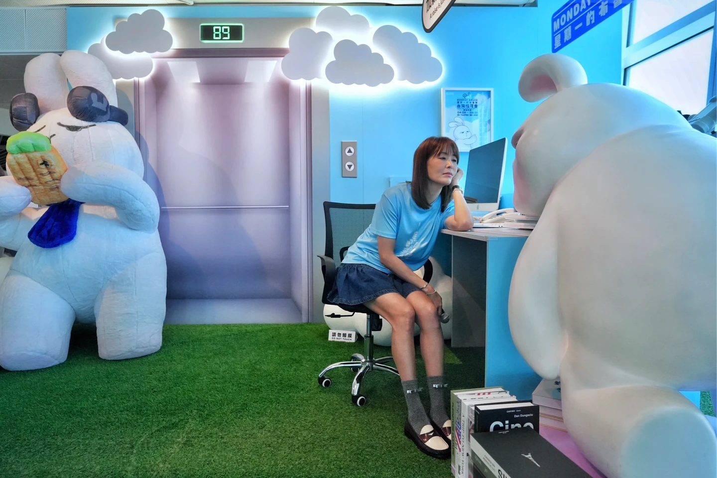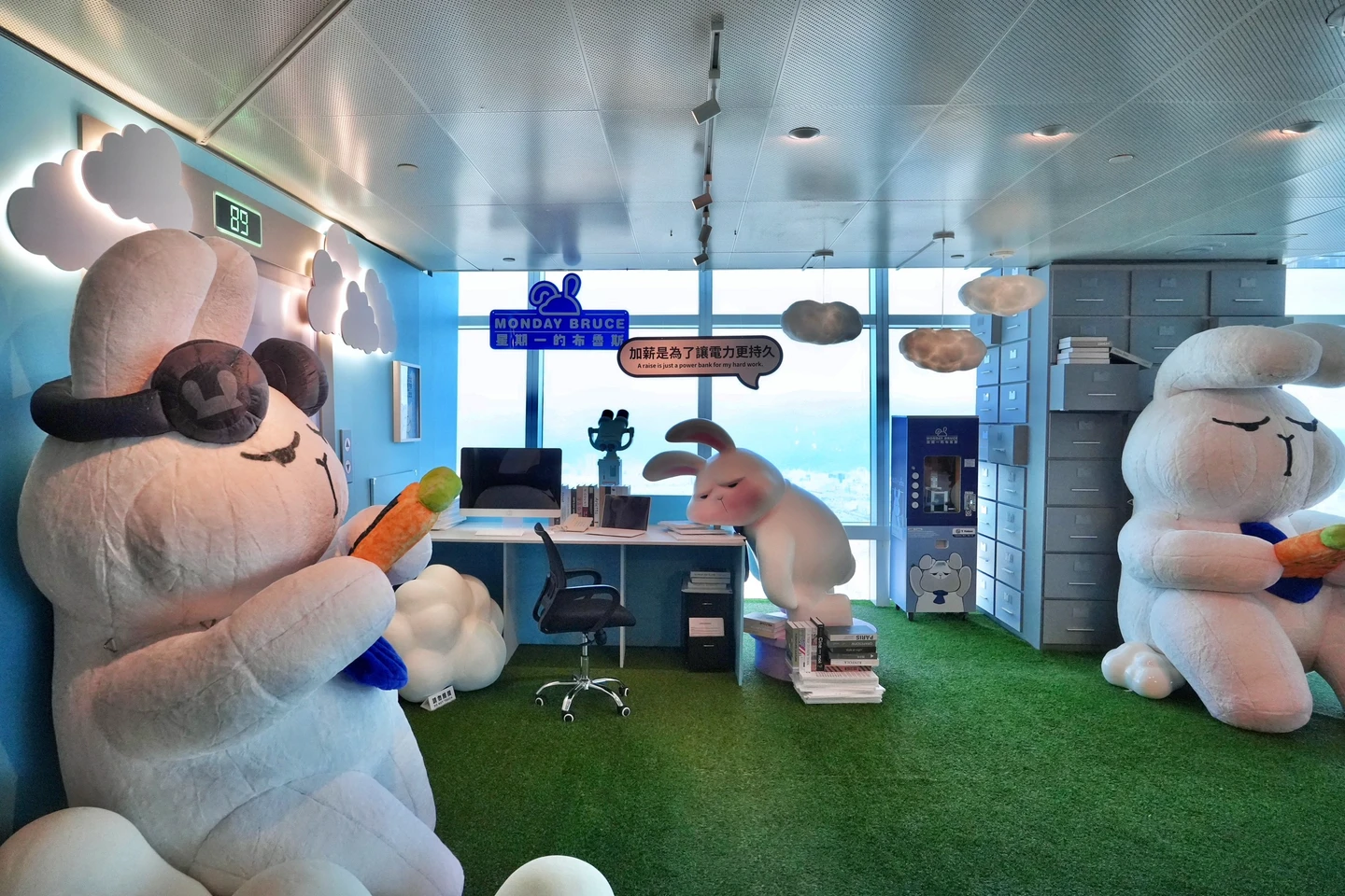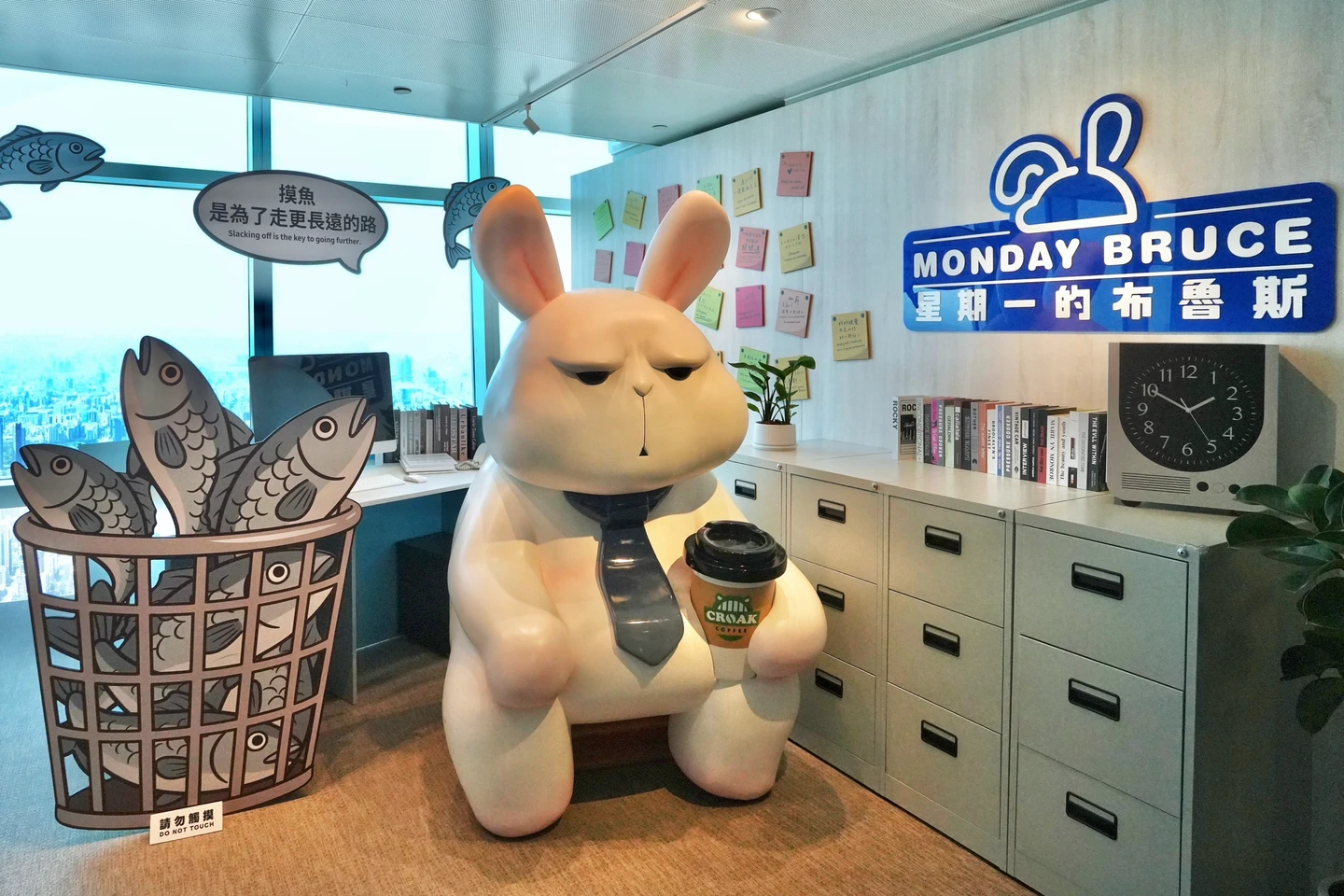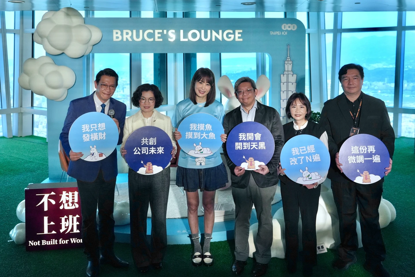【記者劉沛妘/台北報導】迎接兒童節到來,台北101宣布4月2日起89樓觀景台推出年度特展《台灣怪可愛:星期一的布魯斯雲端特展》,聯手台灣人氣原創插畫IP,將帶著深沉黑眼圈、完美體現上班族心聲的憂鬱小兔「星期一的布魯斯(Monday Bruce)」帶上海拔382公尺的高空。台北101董事長賈永婕今(2)日於開展記者會時,自爆「這是我在立法院的日常」,呈現眼神死,很像上課的時候各種偷摸魚。