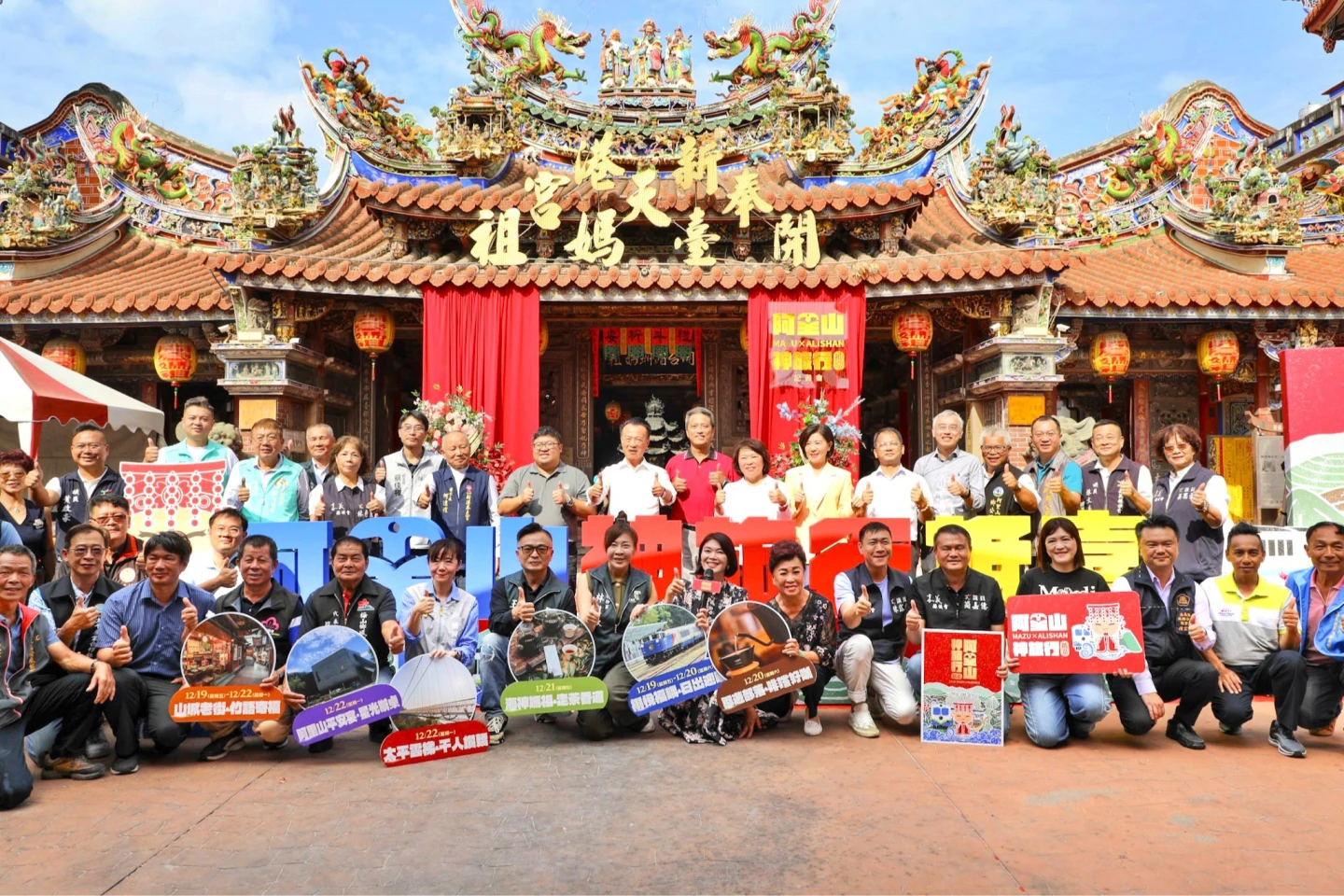 阿管處今天在奉天宮廟前廣場盛大舉辦宣傳記者會,嘉義縣長翁章梁、嘉義市長黃敏惠、立委蔡易餘、王育敏與新港奉天宮董事長何達煌等各界貴賓共同出席,見證這場將為嘉義山海觀光開啟新篇章的宗教盛典。