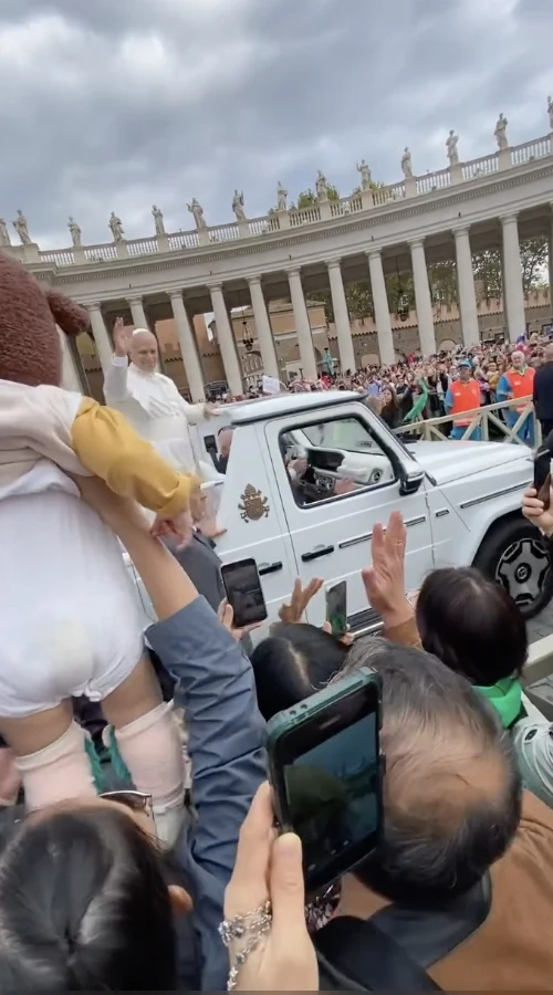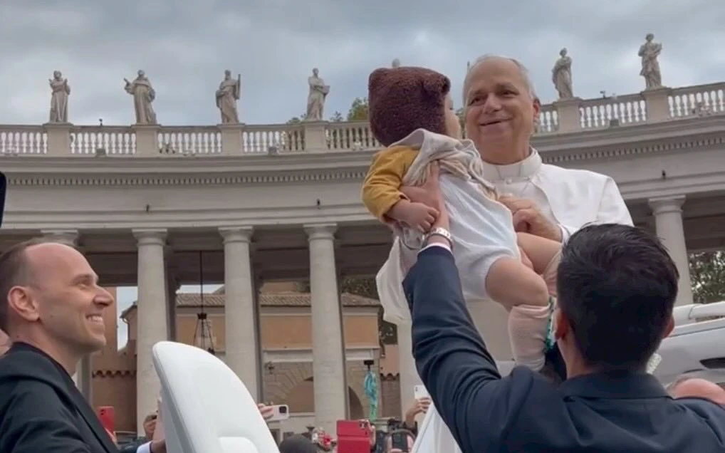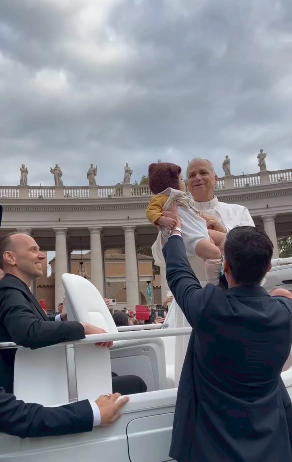 林姓女教友透過社群Threads帳號Ya Shieng Lin分享影片說,教宗良十四世搭乘敞篷座車繞行廣場時,她與許多圍觀信徒都高舉自己的小孩,希望能獲得教宗祝福。沒想到他們真的獲得教宗欽點,她身為天主教徒母親,深感孩子能被教宗祝福是莫大的榮幸。