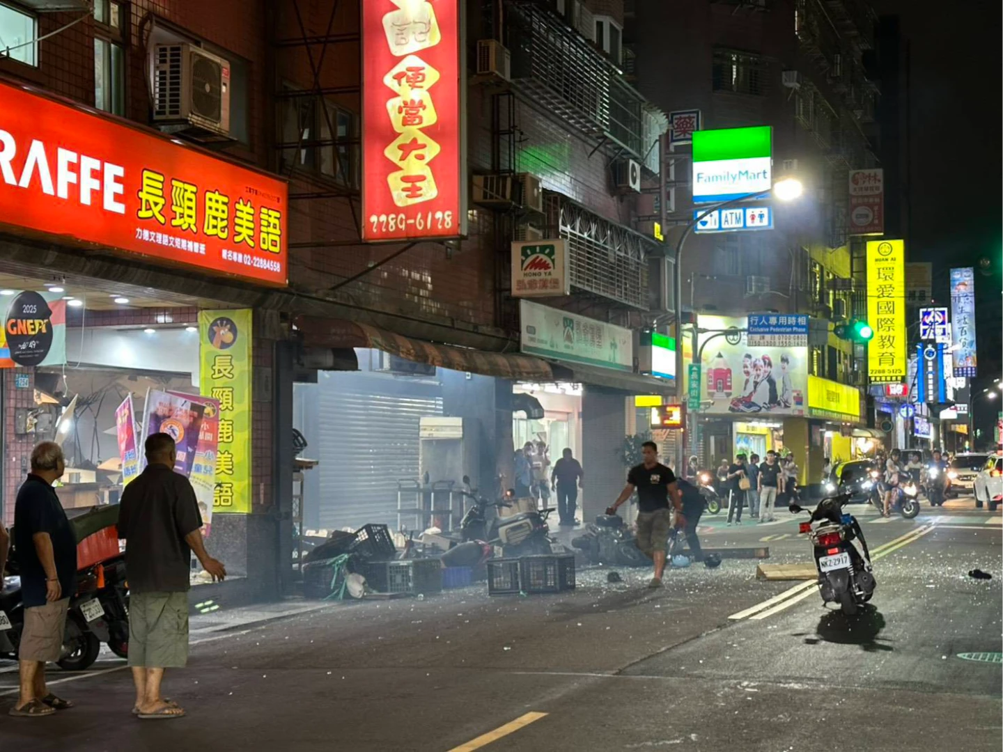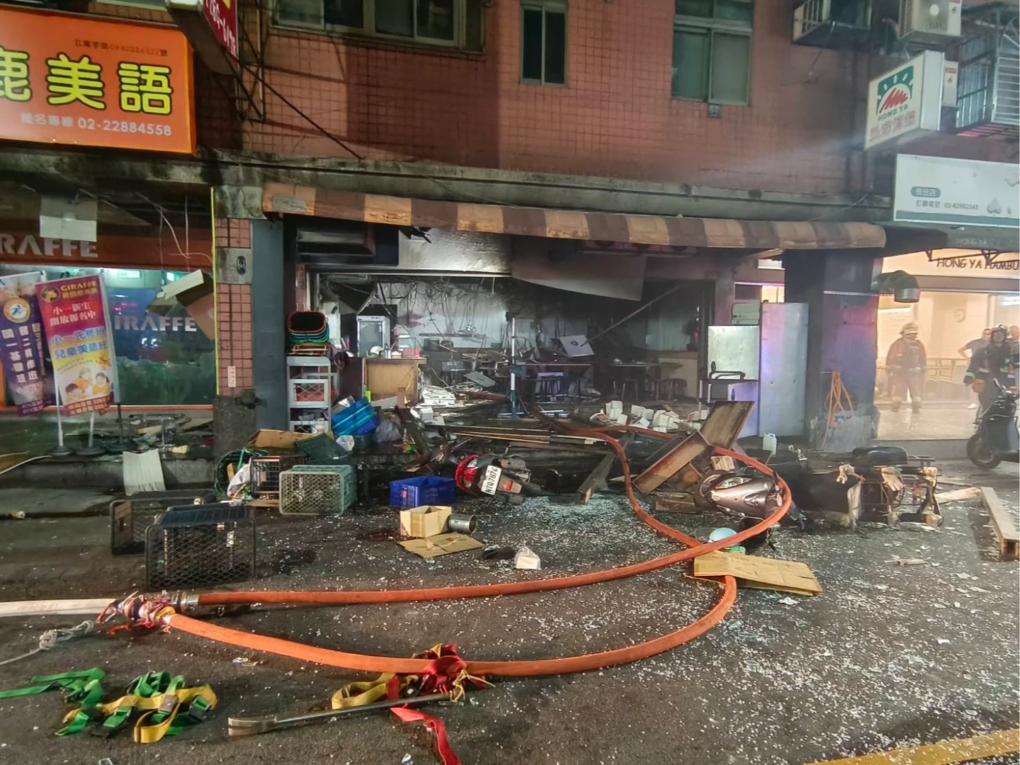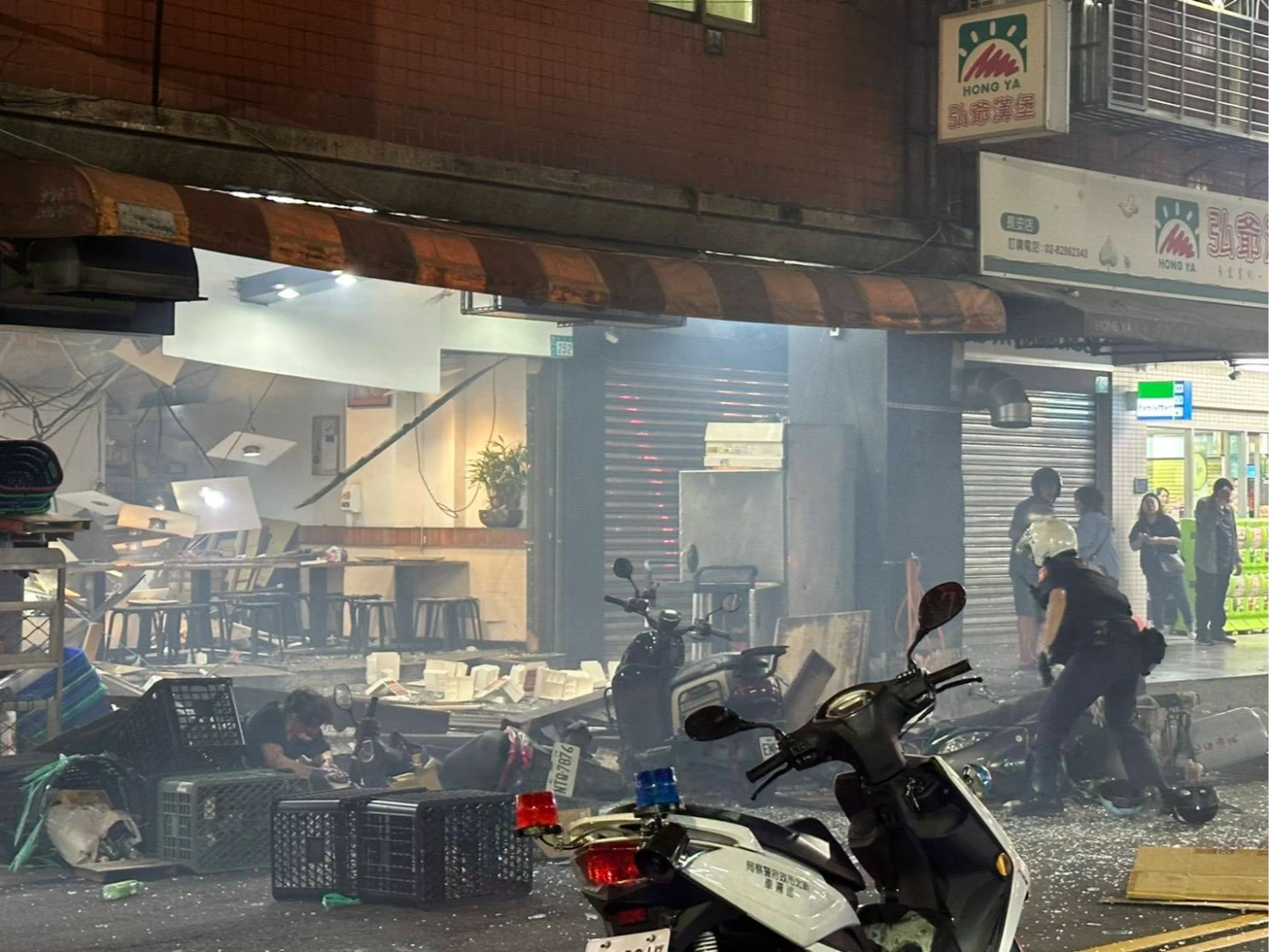 據悉,自助餐店不明原因發生氣爆,現場引發火勢,巨大聲響嚇壞附近民眾,買便當客人急忙逃離現場,有人遭碎玻璃刺傷流血,警方獲報到場協助交通管制。