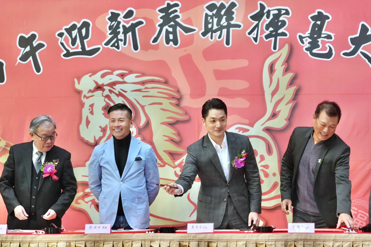 中華民國書學會主辦丙午迎新春聯揮毫暨免費贈送春聯活動,並由蔣萬安、台北市議會議長戴錫欽、中華民國書學會會長張炳煌、億光文化基金會董事長簡文秀及台北市文化局局長蔡詩萍擔任開筆官,寫下「北添瑞氣 駿馬報豐年」及10位書傳生,寫下『新年添福氣 歡樂滿人間』,向市民朋友們拜個早年。
